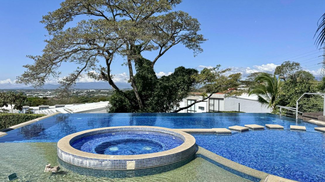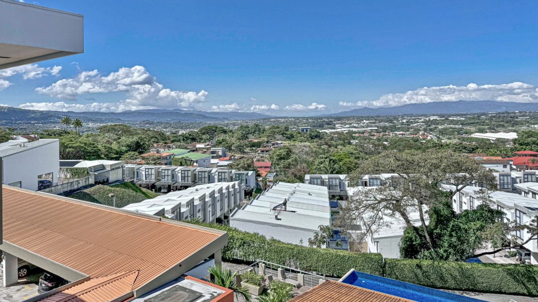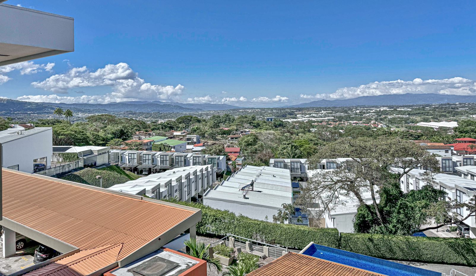 Welcome to Condo Sunset Breeze for sale in Santa Ana, San Jose, Costa Rica. This residence boasts stunning expansive views of the valley and rolling mountains integrated with a contemporary decor.