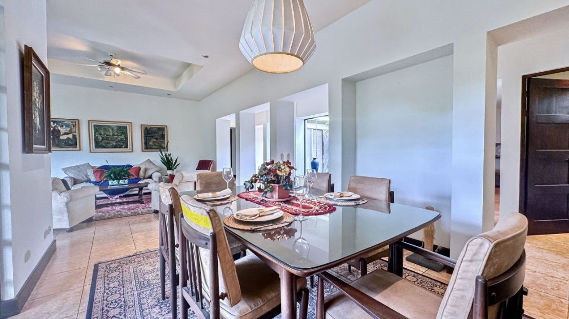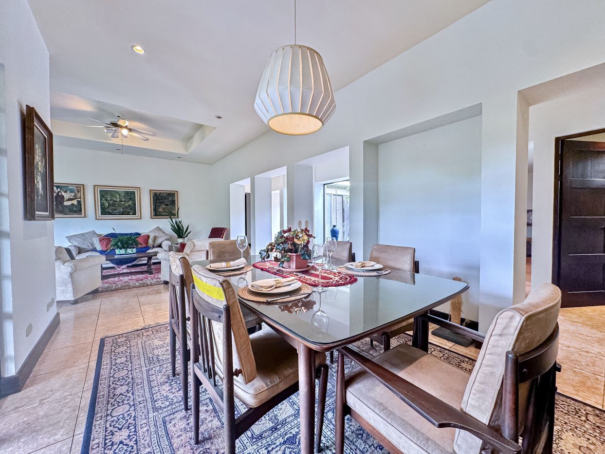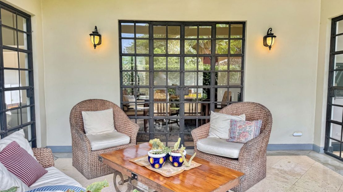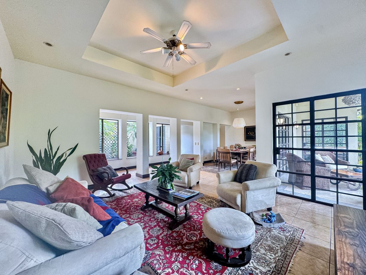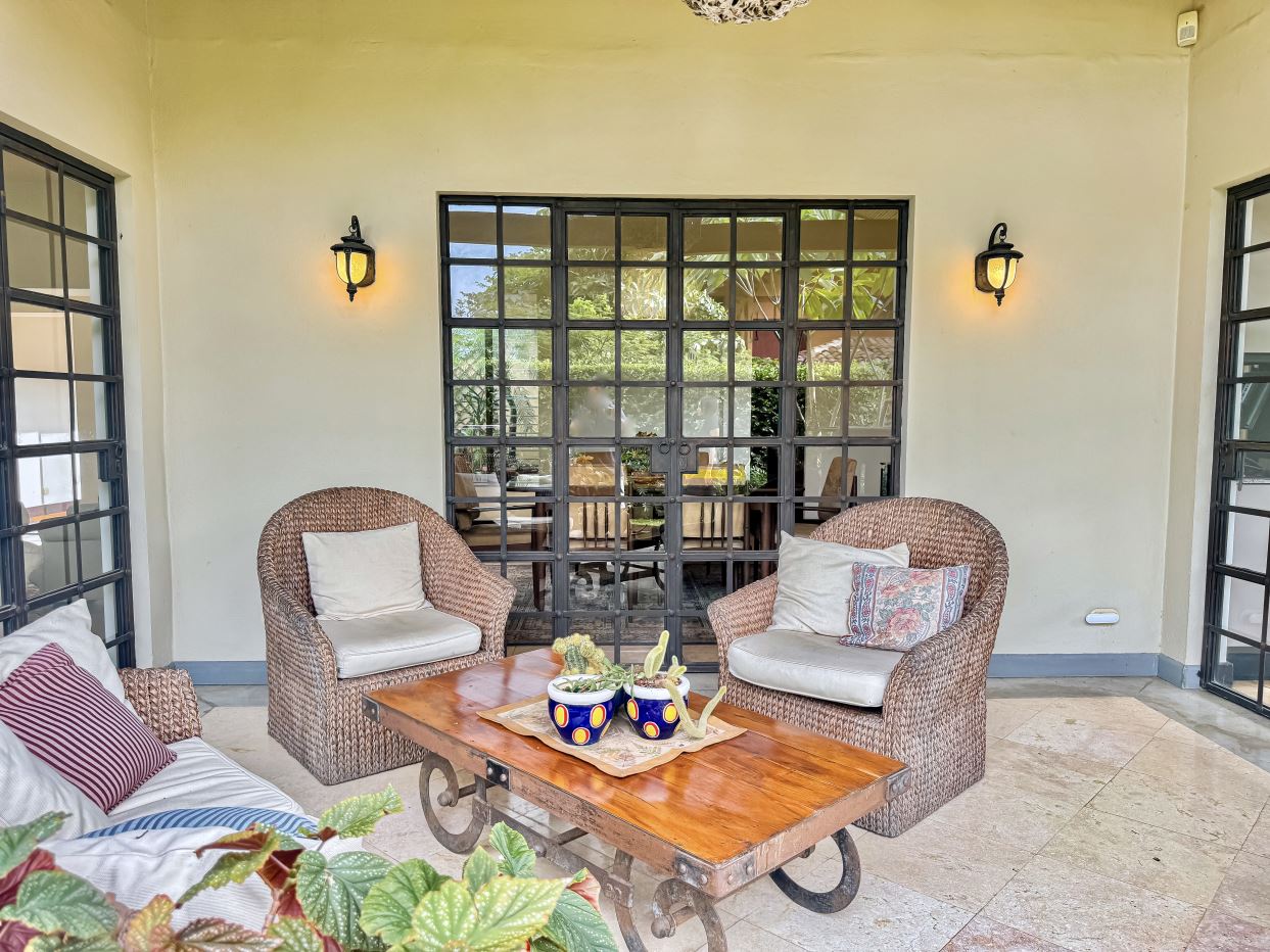 Características Especiales: • Gran patio cubierto con acabados de techo de caña brava. Este espacio es perfecto para recibir visitas o relajarse con familiares y amigos. Amplio espacio para sentarse y descansar. • Jardines exóticos. • Todas las habitaciones con baño en suite. • Acceso rápido a la Ruta 27.