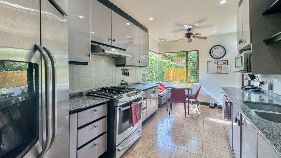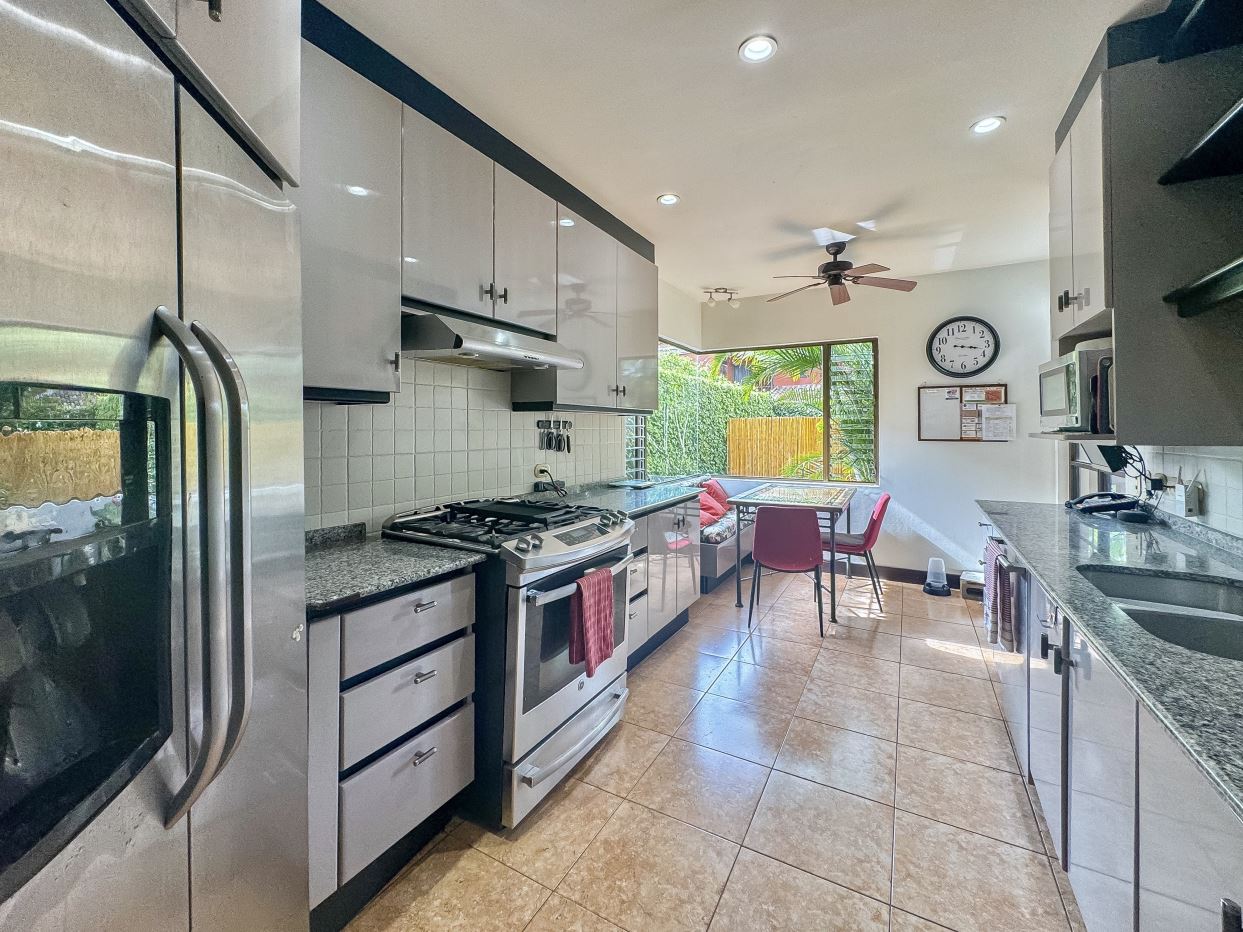 La cocina está separada de las áreas principales de la casa, creando un espacio enfocado para la creatividad culinaria. Cuenta con amplios gabinetes, un rincón de desayuno, electrodomésticos de acero inoxidable y un generoso espacio en el mostrador.
