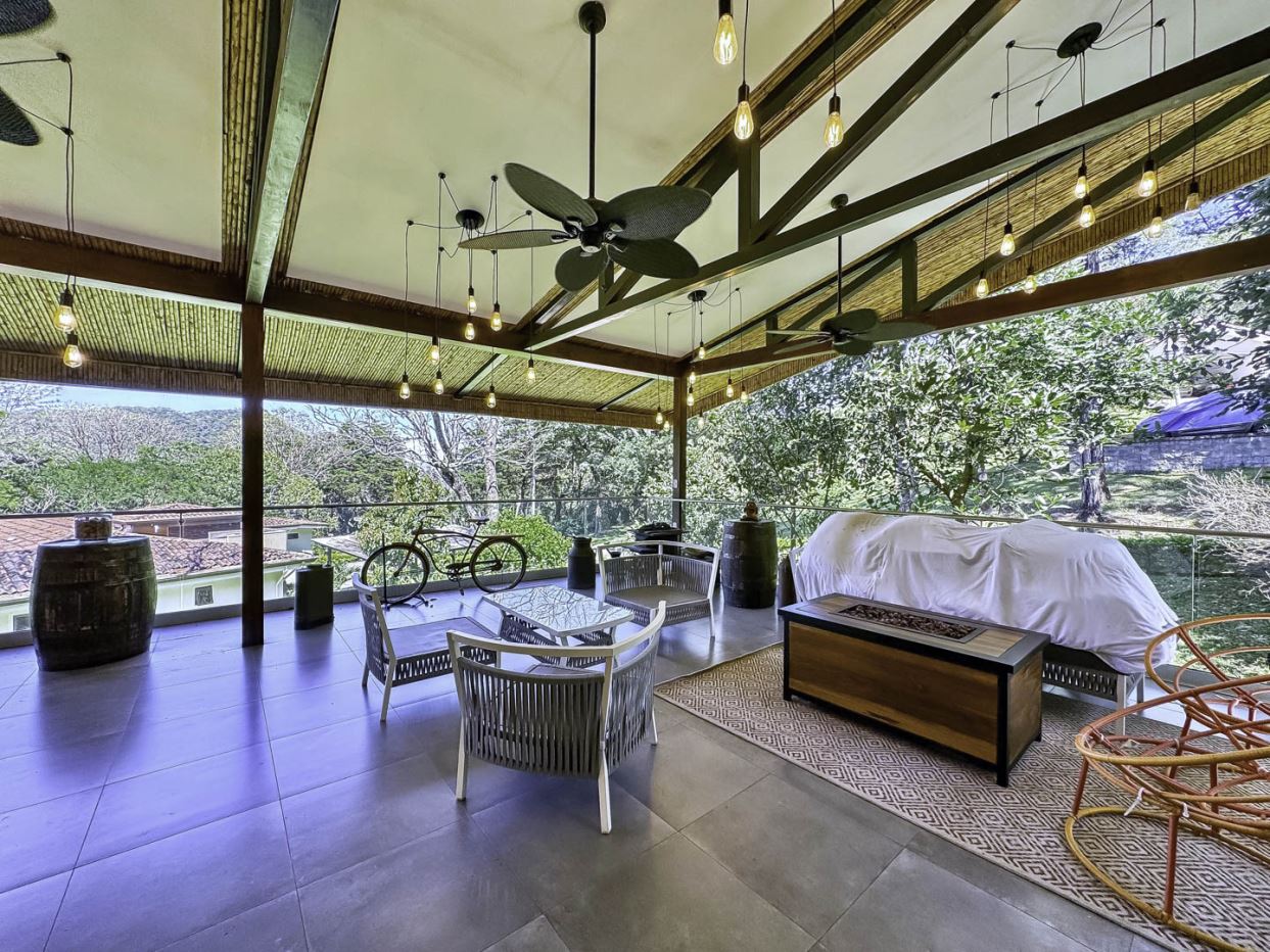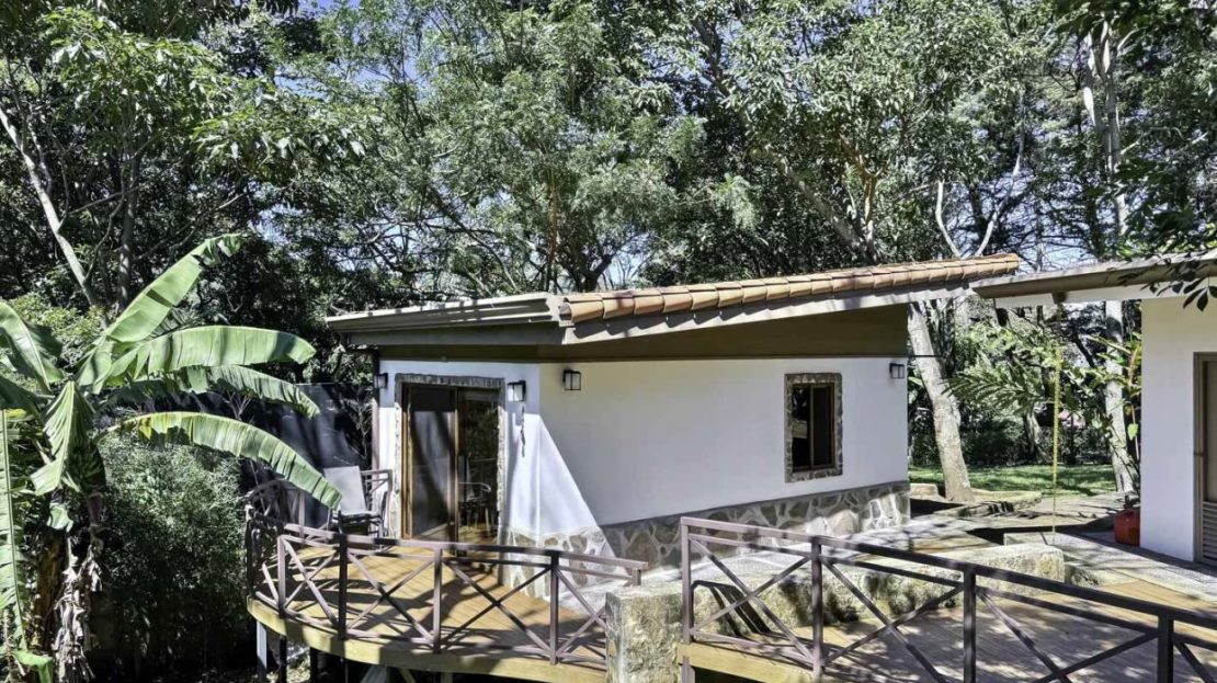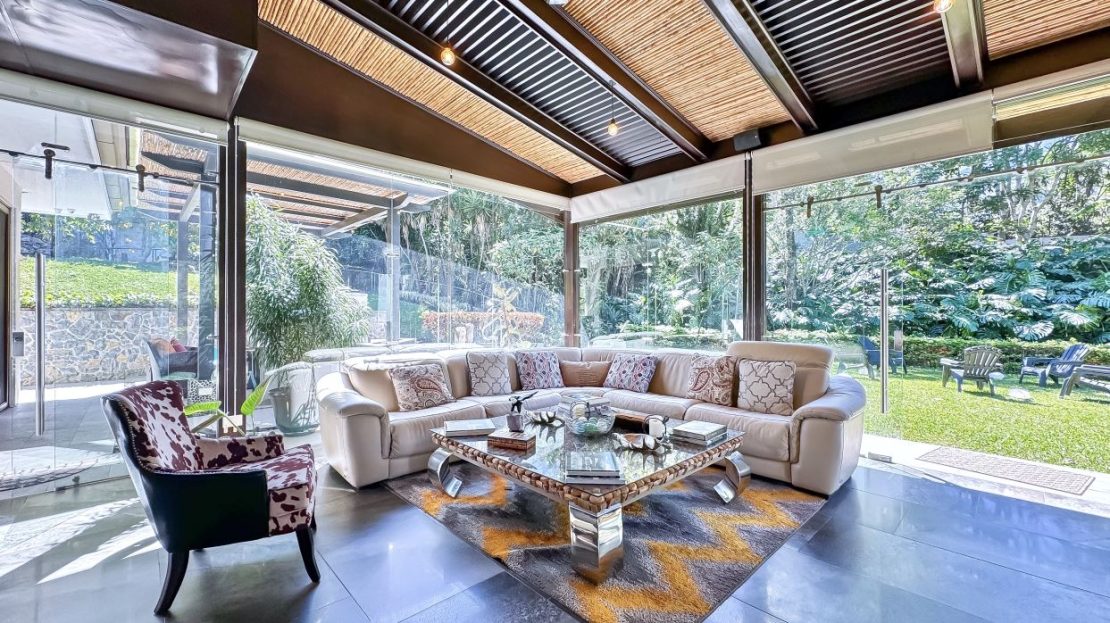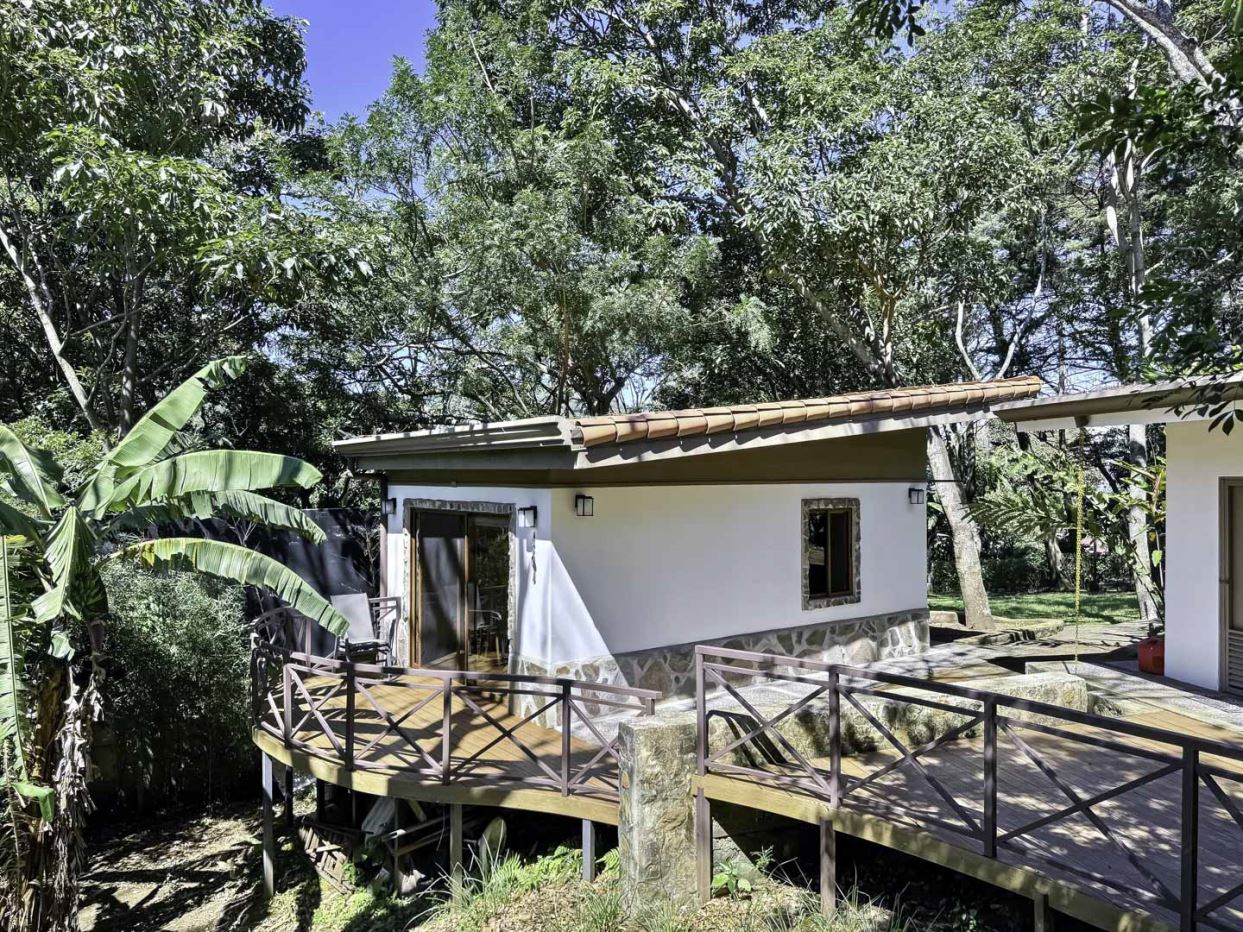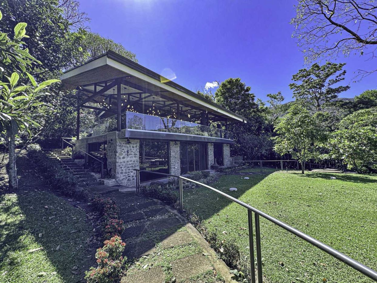 Welcome to Oak Trees Estate, a one-level home for sale in Santa Ana, Costa Rica, boasting a primary residence with 4 bedrooms, four full bathrooms, a maid’s room, a one- bedroom cottage house and a two-level clubhouse. Oak Trees Estate is a rare and exceptional find—an expansive estate just minutes from the heart of the city, set amidst a lush backdrop of mature trees, spanning over 7,000 square meters of serene, private grounds. With its enchanting walking trails, a picturesque bridge, rustic clubhouse with contemporary features and a charming guest house, this residence is a true sanctuary.