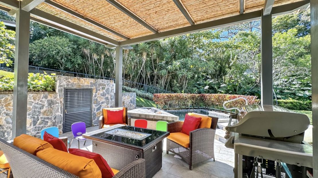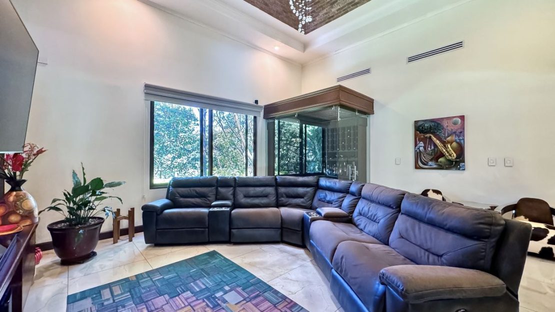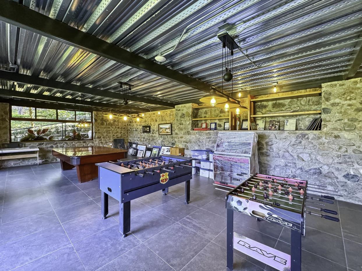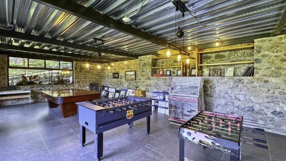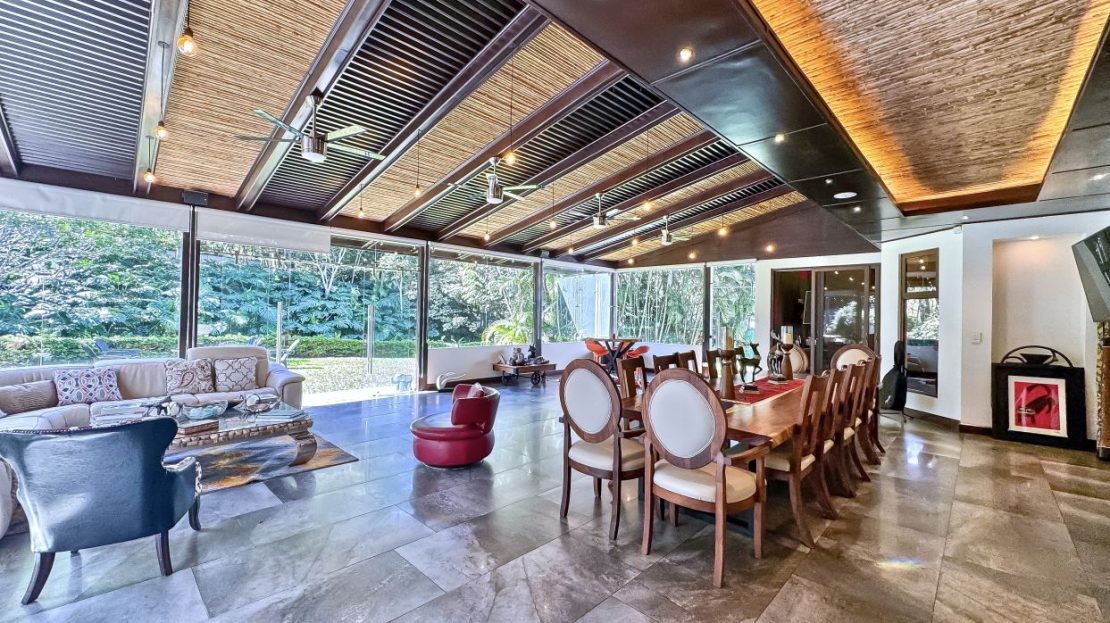 Welcome to Oak Trees Estate, a one-level home for sale in Santa Ana, Costa Rica, boasting a primary residence with 4 bedrooms, four full bathrooms, a maid’s room, a one- bedroom cottage house and a two-level clubhouse. Oak Trees Estate is a rare and exceptional find—an expansive estate just minutes from the heart of the city, set amidst a lush backdrop of mature trees, spanning over 7,000 square meters of serene, private grounds. With its enchanting walking trails, a picturesque bridge, rustic clubhouse with contemporary features and a charming guest house, this residence is a true sanctuary.
