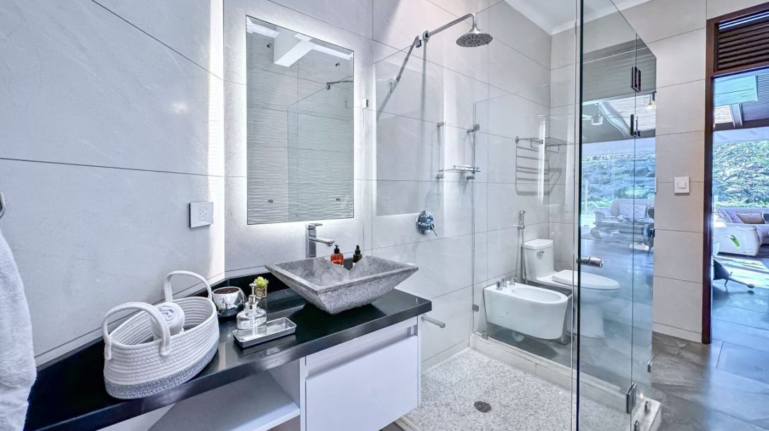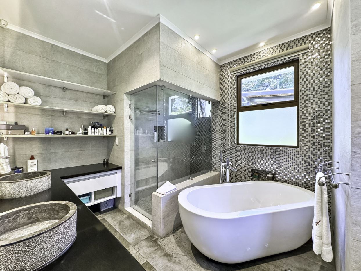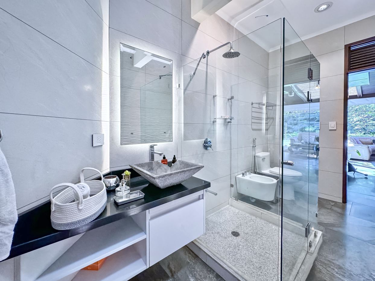 Two additional bedrooms overlook lush gardens and share a beautifully designed Jack-and-Jill bathroom. A fourth bedroom enjoys its own en-suite bathroom and garden views.