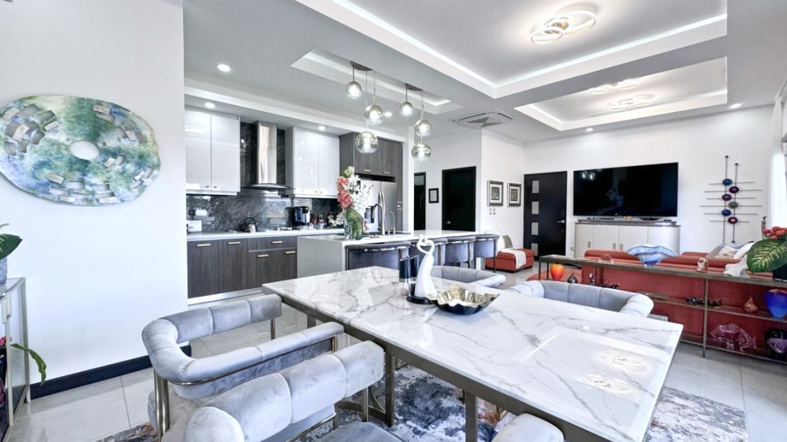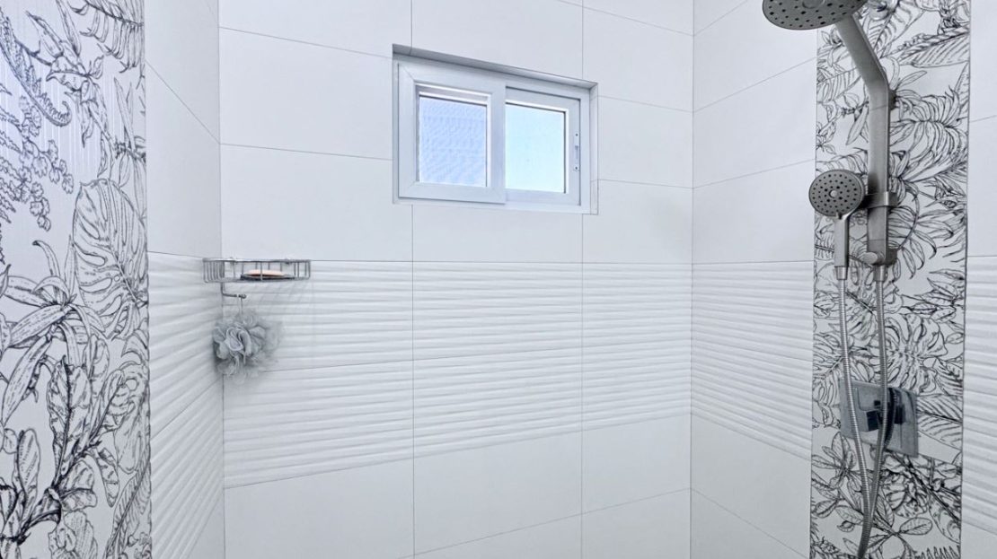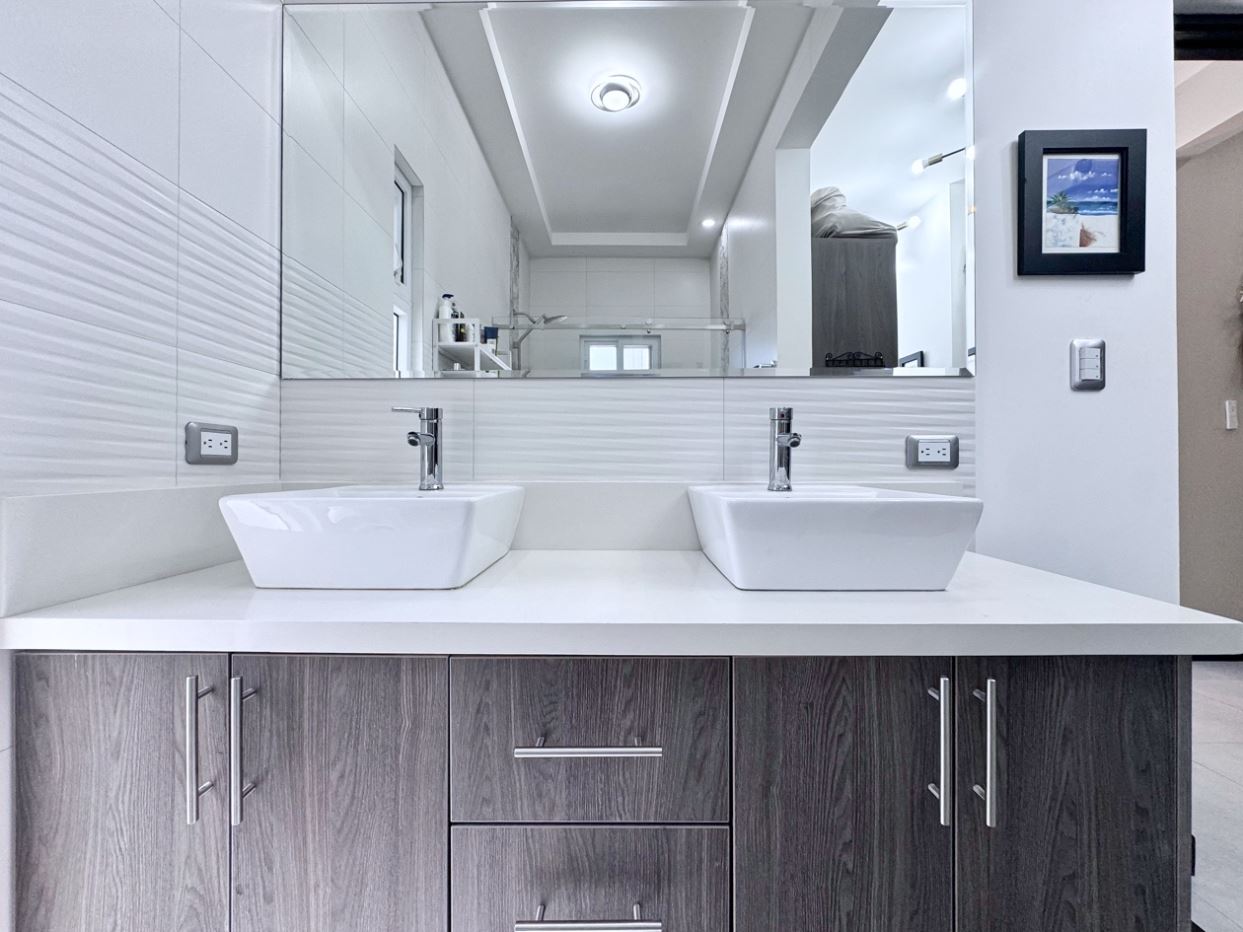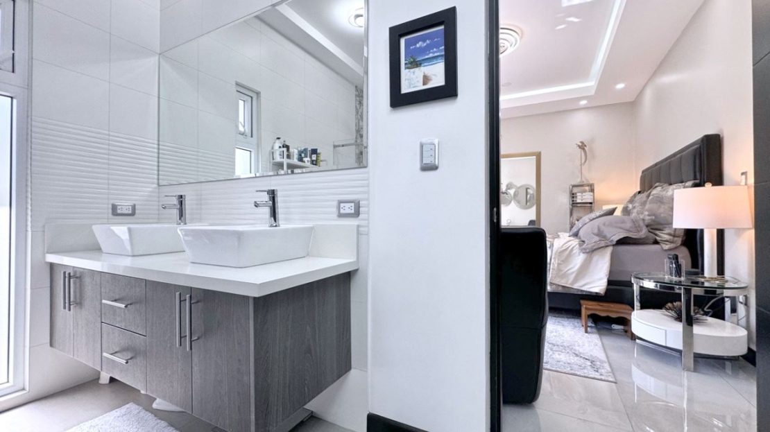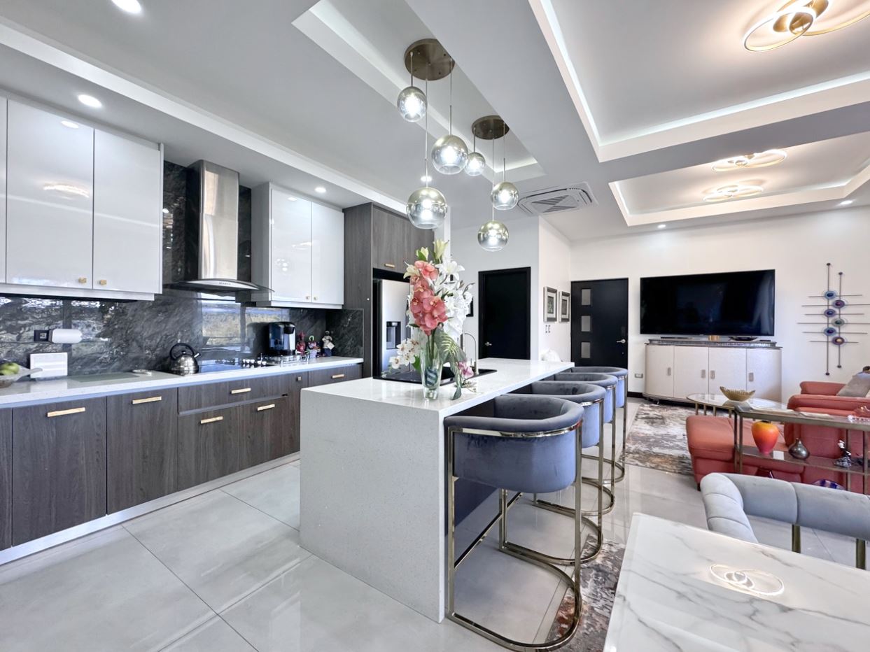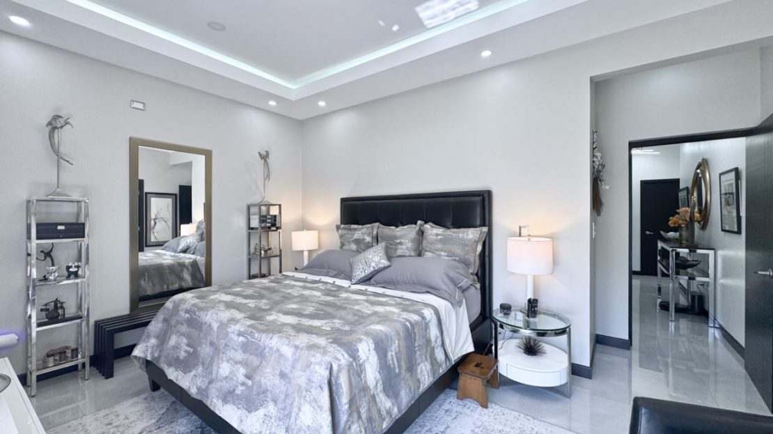 • Lots of Natural Light.• Contemporary Finishes.• Designer Tile• Tempered Glass Sliding Doors in Bathrooms.• Quartz countertops.• Porcelanto Floors• High Ceilings.• Coffered ceiling with Cove Lighting.• Decorative Lighting