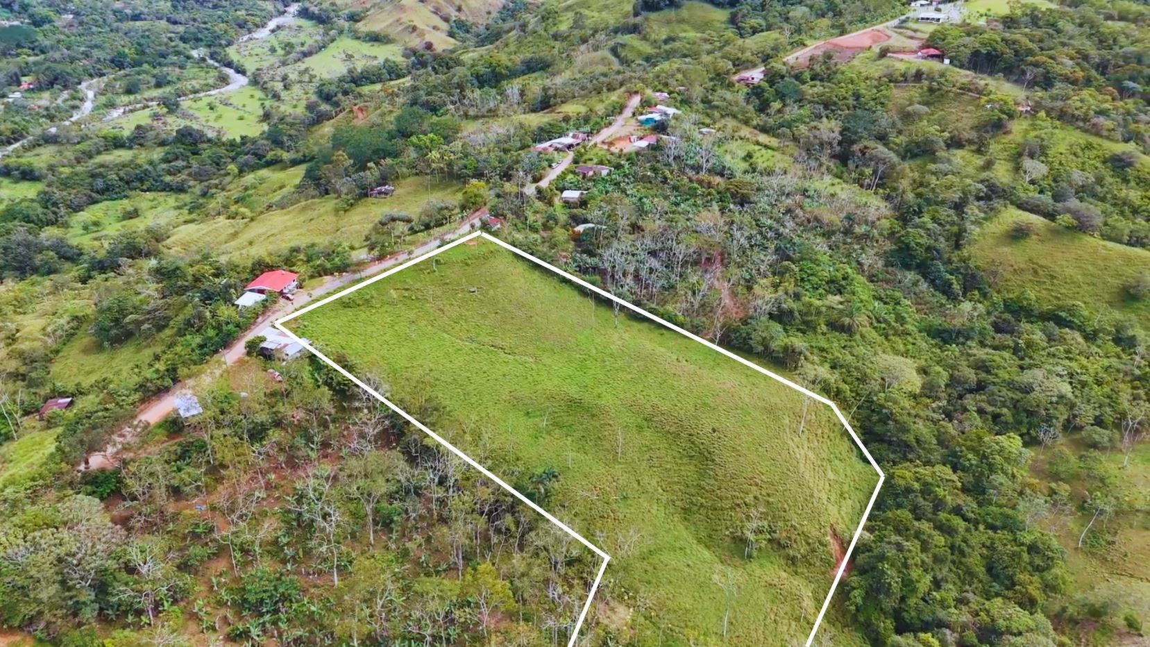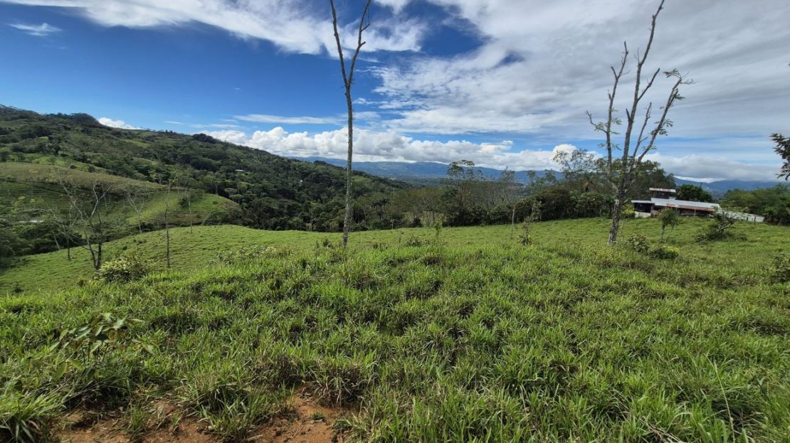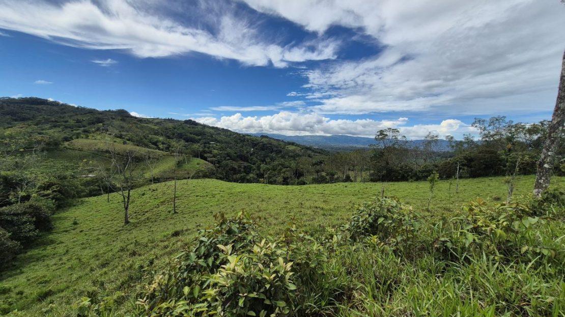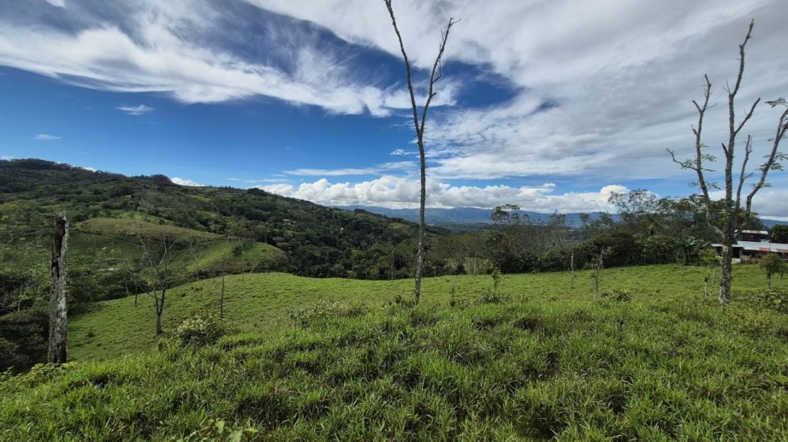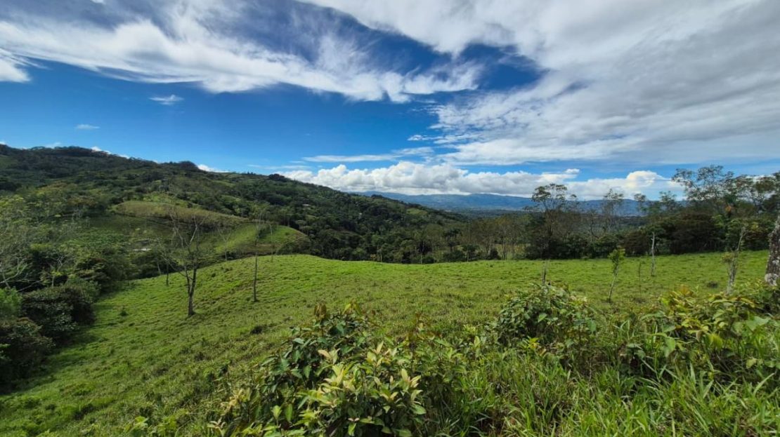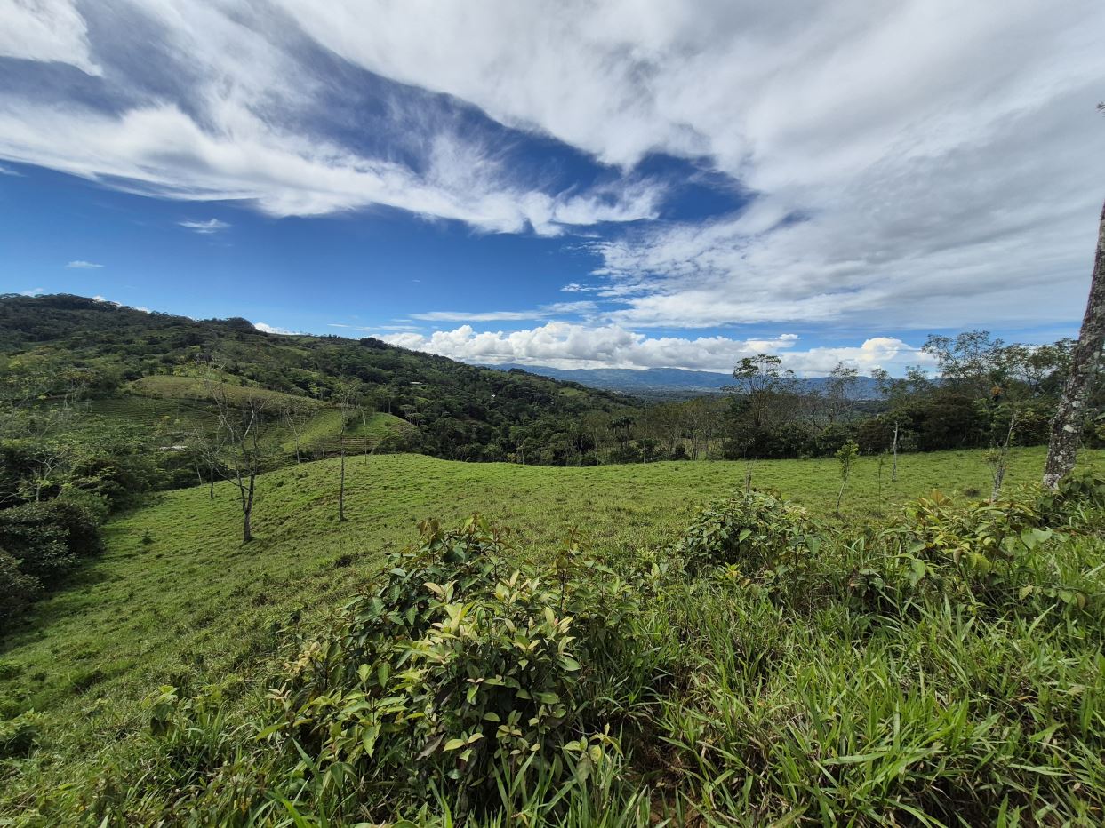 This beautiful 2+ hectare pasture property in Miraflores, Pérez Zeledón offers a gentle incline that opens to impressive views over the entire valley. With a public road on one border, access is quick and convenient—no 4×4 required—and the location provides a fresher mountain climate just 15 minutes from Walmart in San Isidro and 10 minutes from the town of Rivas. A year-round creek borders the opposite side of the land, accompanied by a natural forest corridor that adds privacy, shade, and biodiversity. The property has water and electricity availability, making it ideal for a private residence, small homestead, or investment property with excellent usability and natural beauty.