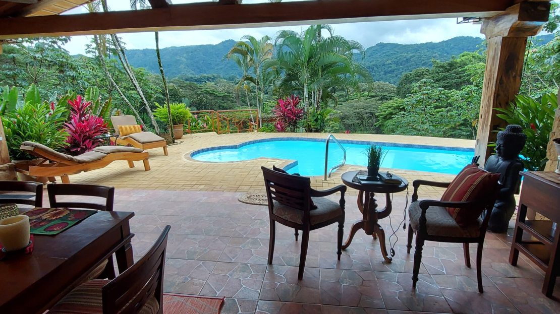 When used as a short-term rental, this property receives excellent 5-star reviews from guests, who continuously comment that it has one of the most amazing views you will see anywhere. Below is a large valley with a river and mountains encircling it. You will likely see Scarlet Macaws, toucans, iguanas, opossums, white-faced monkeys, and deer throughout the day.
