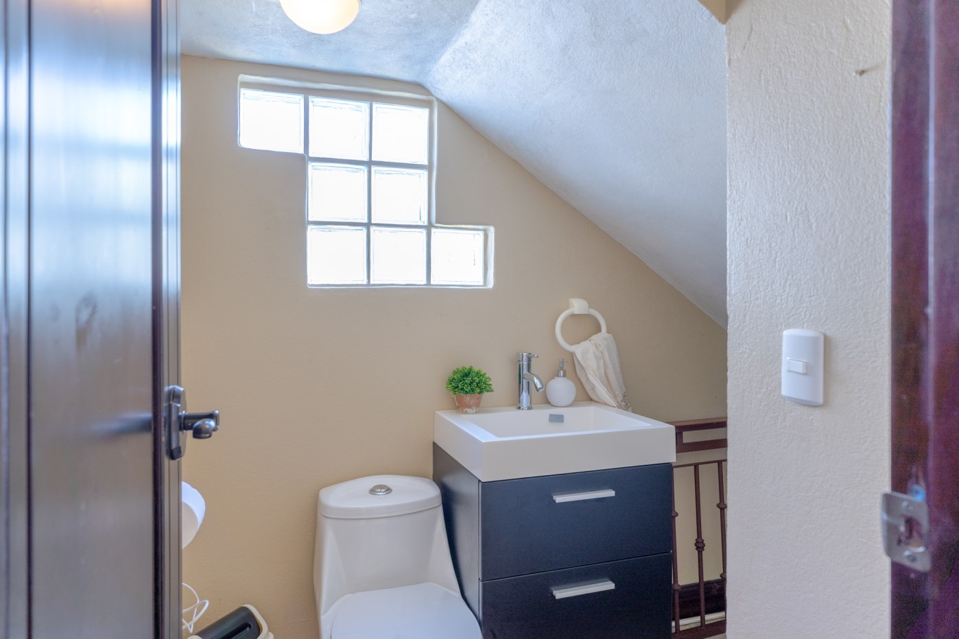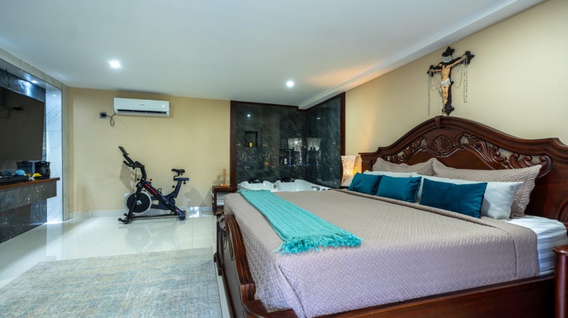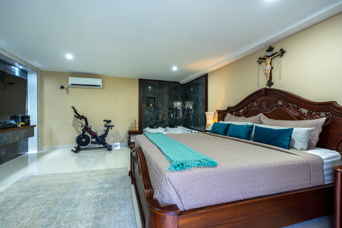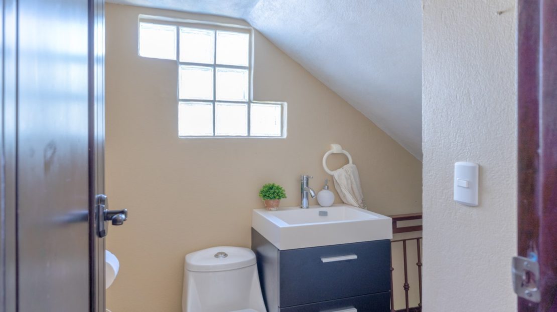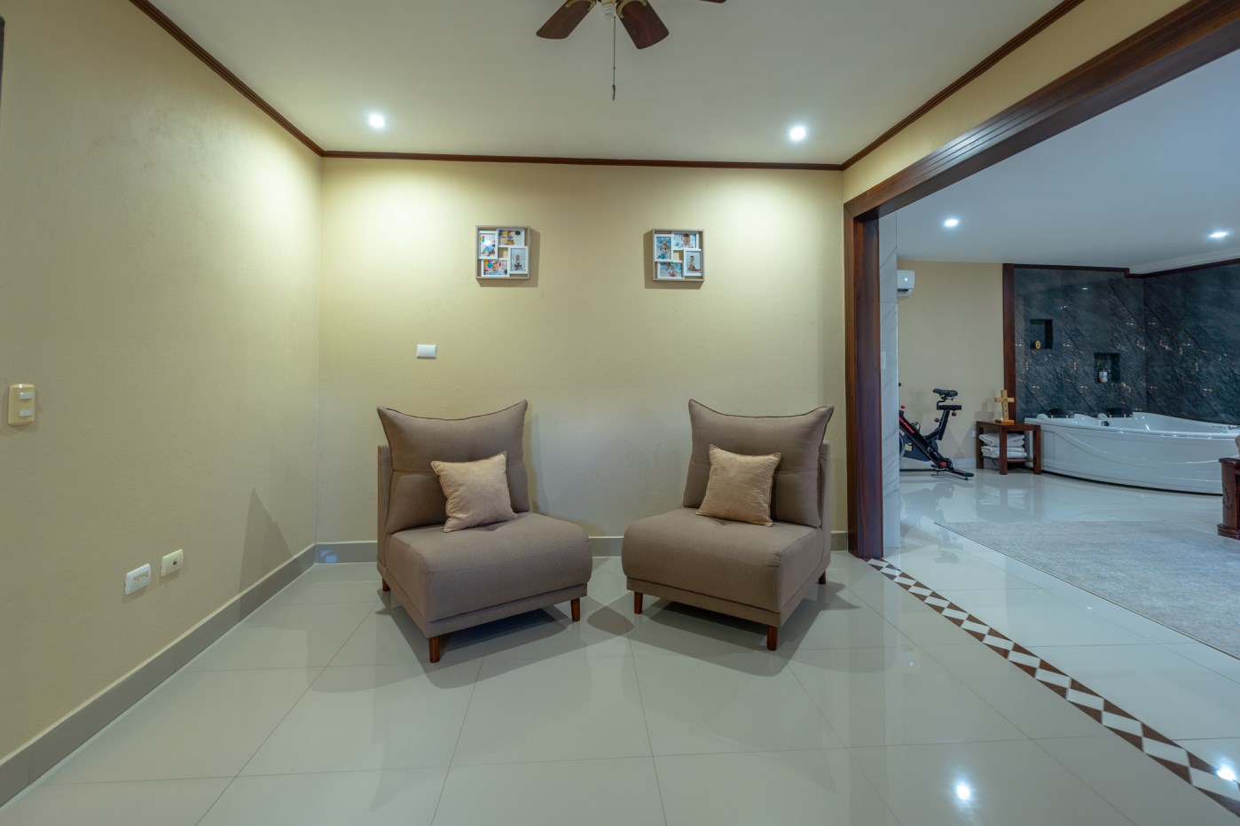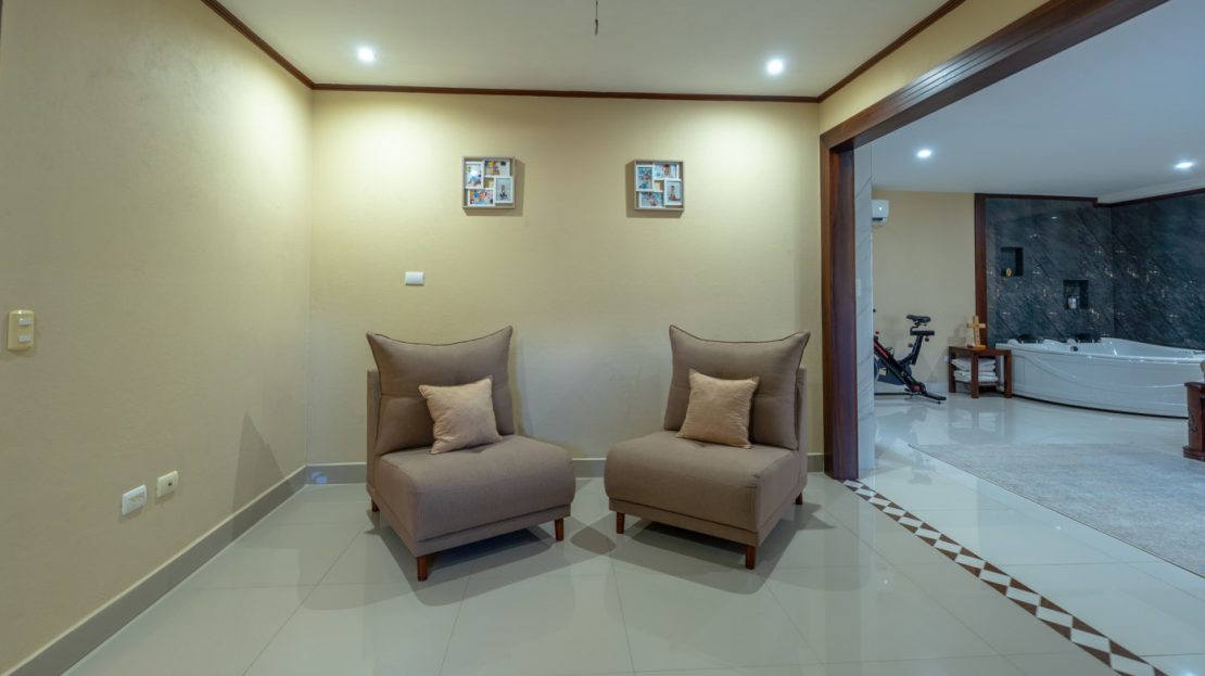 Las habitaciones en el nivel superior ofrecen refugios personales de serenidad, con grandes ventanas que enmarcan vistas impresionantes. El dormitorio principal, con su propio baño en suite, es un santuario de lujo y confort. Imagina despertar cada mañana con la luz del sol filtrándose a través de los árboles y el canto de los pájaros como banda sonora.