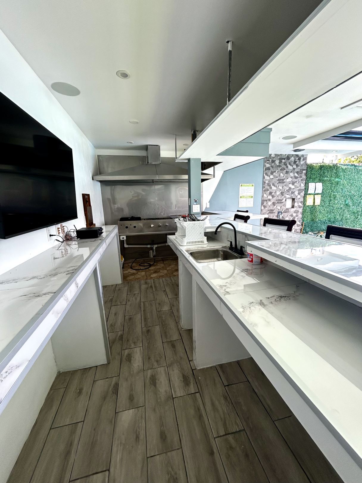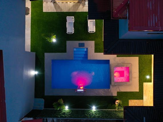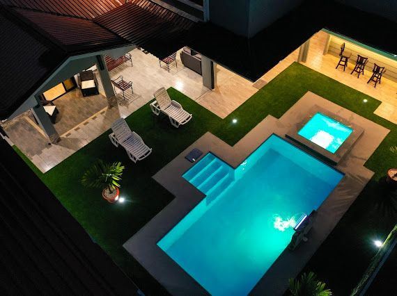 The estate’s most unforgettable feature is its spectacular outdoor living environment. A striking pool with integrated jacuzzi anchors this resort-style sanctuary, surrounded by beautifully designed leisure and entertaining spaces. A large, covered outdoor kitchen, fully equipped and state-of-the-art, features a spacious barbecue grill, expansive countertops, and a welcoming bar counter overlooking the pool. This entire area is crafted for effortless gatherings, celebrations, or relaxing evenings with friends and family. Ceiling-mounted outdoor speakers infuse the space with ambiance, completing the open-air luxury experience. This outdoor living area is the true centerpiece of the Dracaena House and never fails to impress.