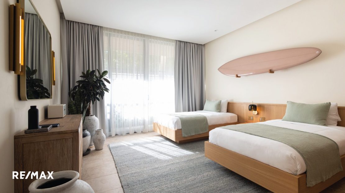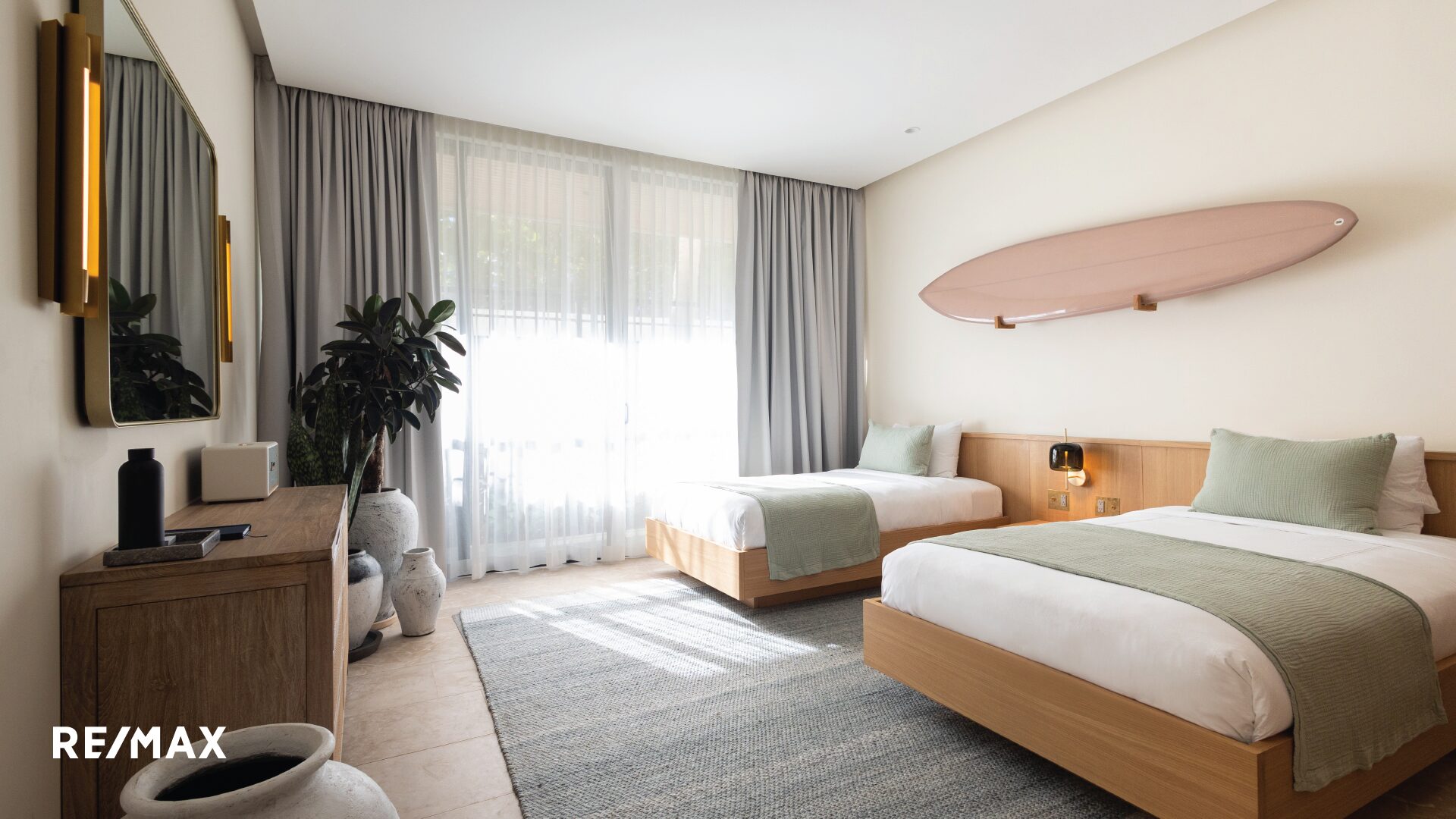 The Retreat Residences provide access to exclusive, world-class amenities. Residents can enjoy a private rooftop terrace with a full kitchen and dining facilities, ideal for hosting gatherings. The rooftop also includes an infinity pool offering breathtaking views. Other amenities include a fully equipped fitness studio, secure surf storage with post-surf shower facilities, and 24/7 security to ensure a peaceful living experience. A dedicated concierge and front desk service are available to cater to your needs, enhancing the convenience and luxury of your lifestyle.