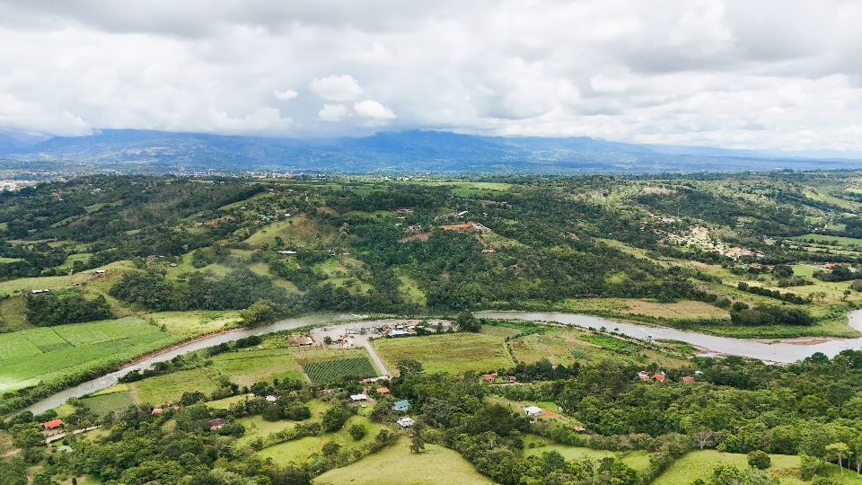 A breathtaking panoramic view of the El General Valley and one of the area’s main rivers, providing a peaceful and scenic environment.