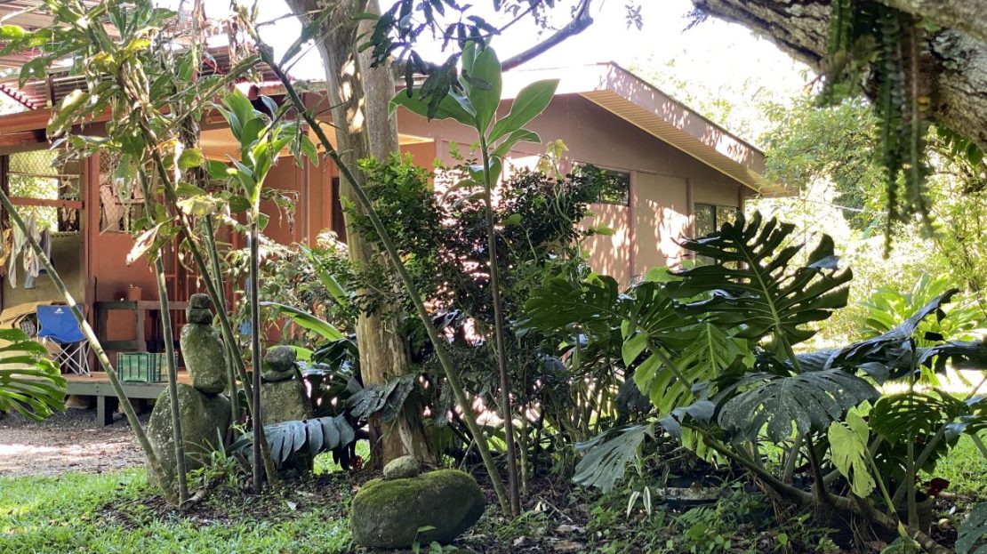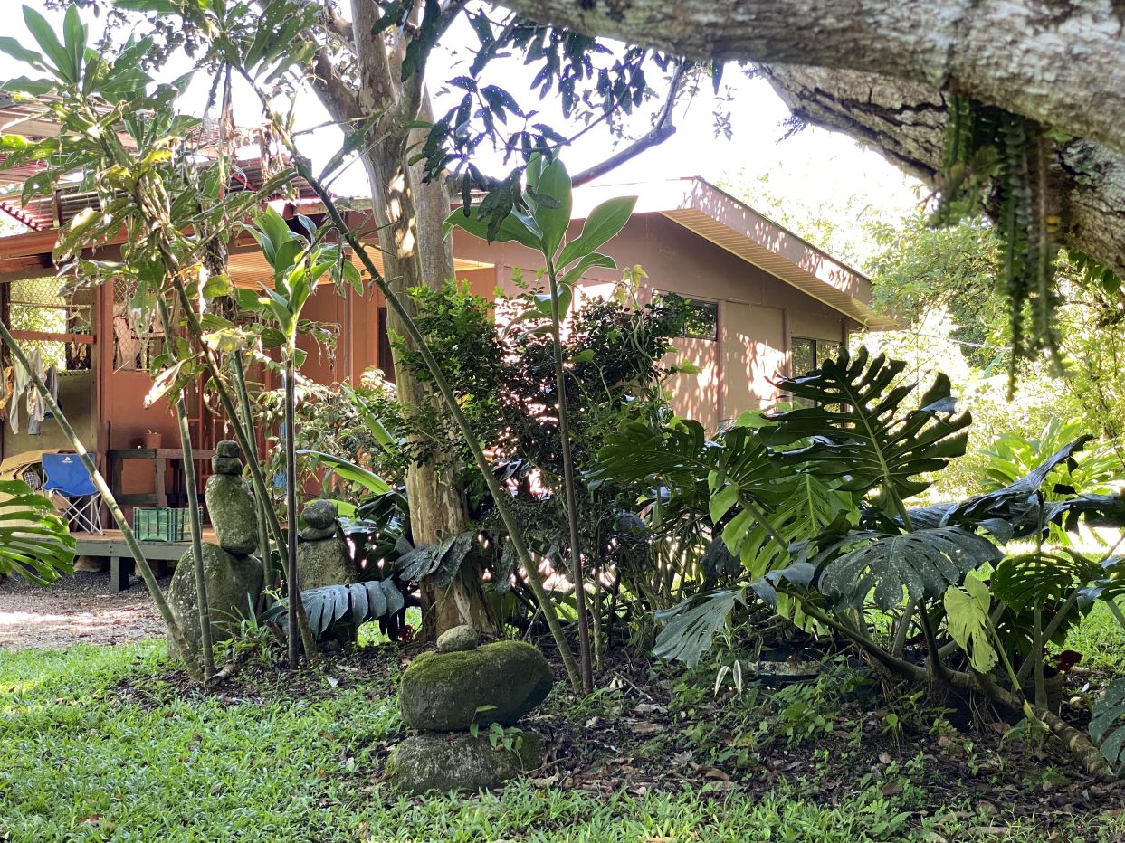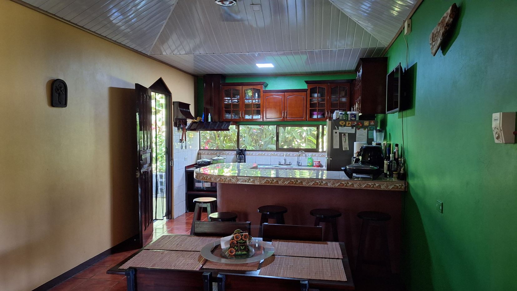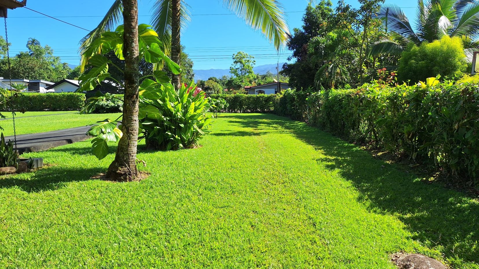 La propiedad está rodeada de exuberante vegetación, jardines cuidadosamente mantenidos, árboles frutales y una amplia zona verde perfecta para disfrutar al aire libre.