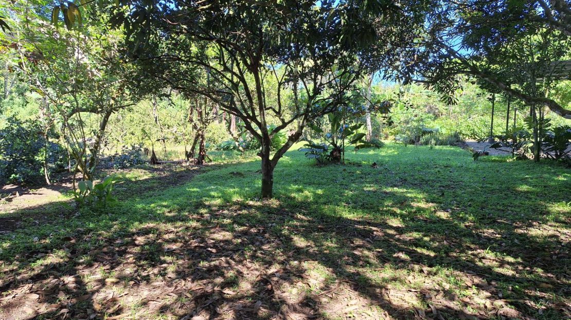 Surrounded by lush vegetation, well-maintained gardens, fruit trees, and a spacious green area, the property is perfect for enjoying the outdoors in a serene environment.