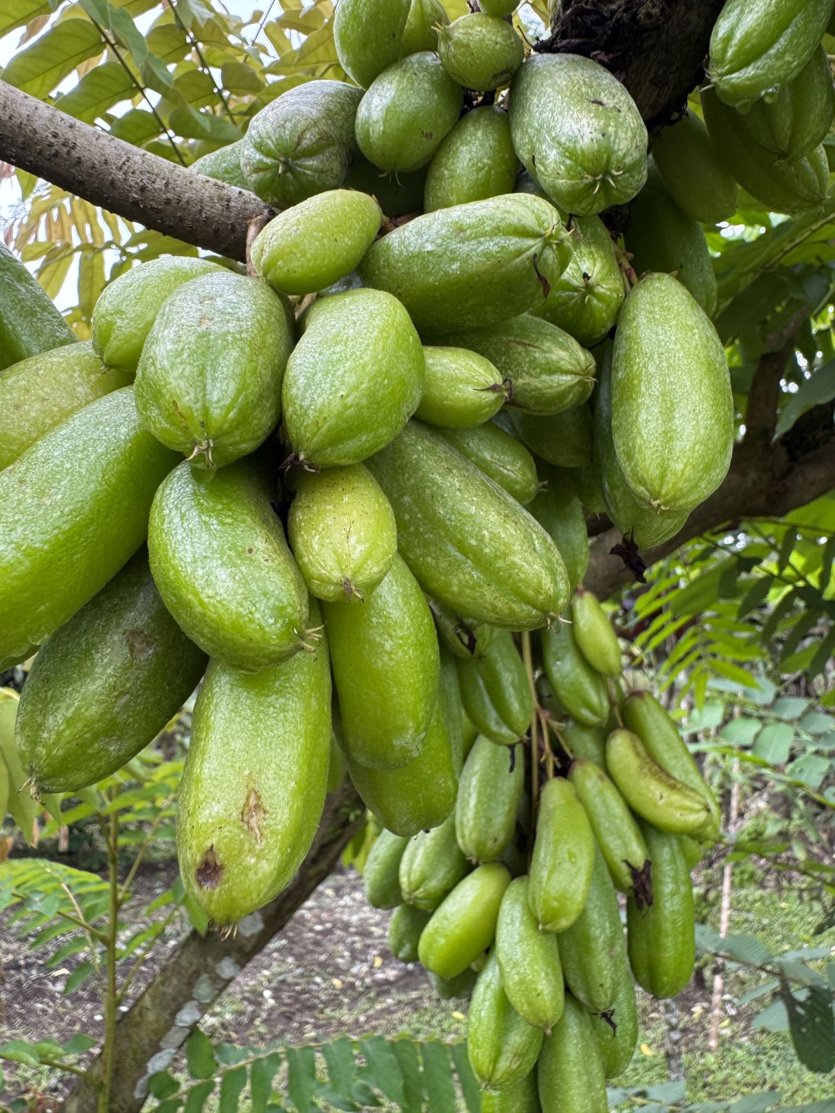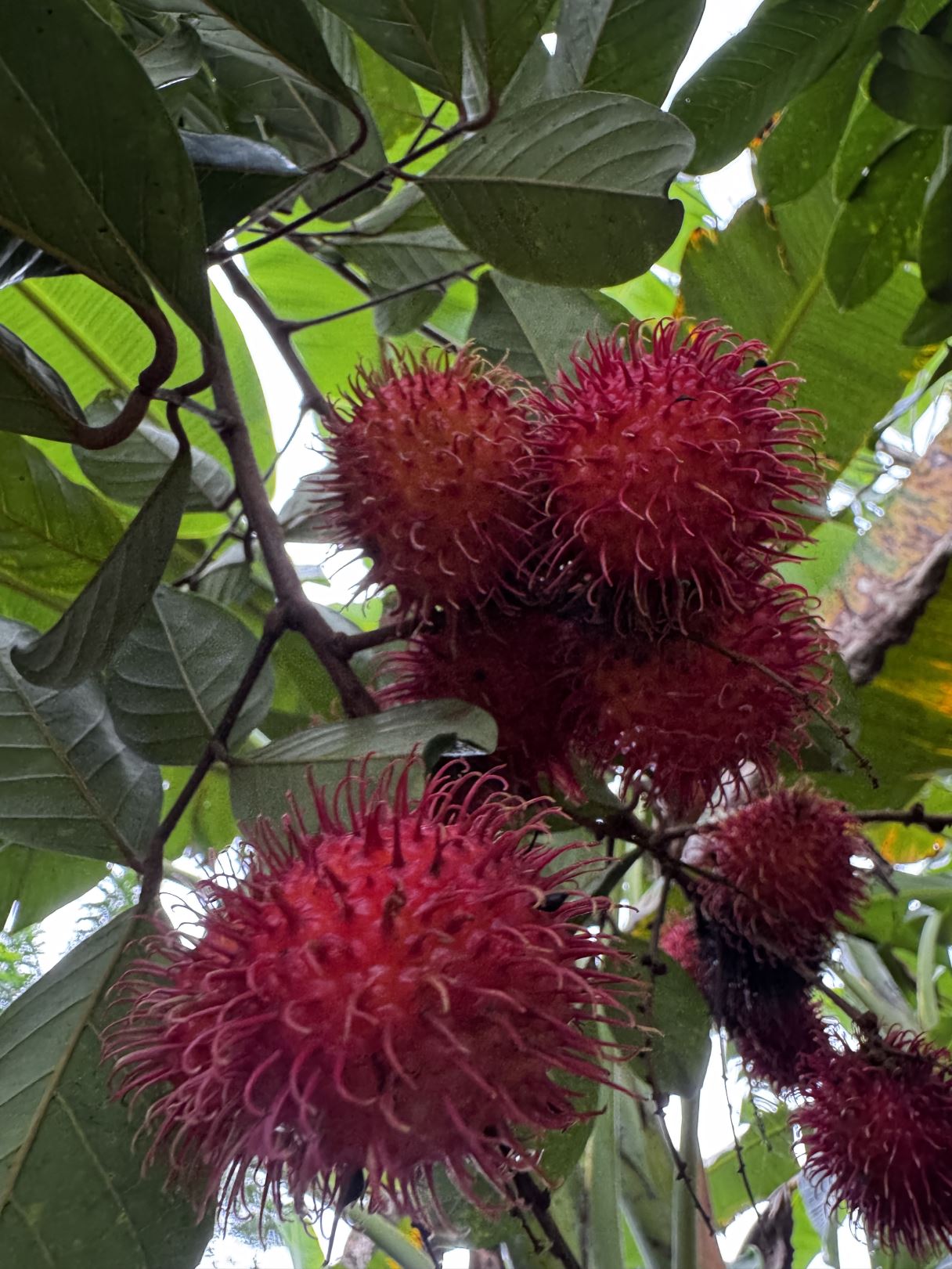 Coconut palms, mamón, guaba, mangosteen, and mecino lemon