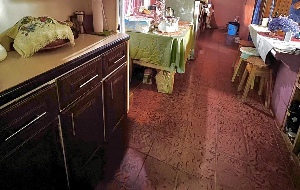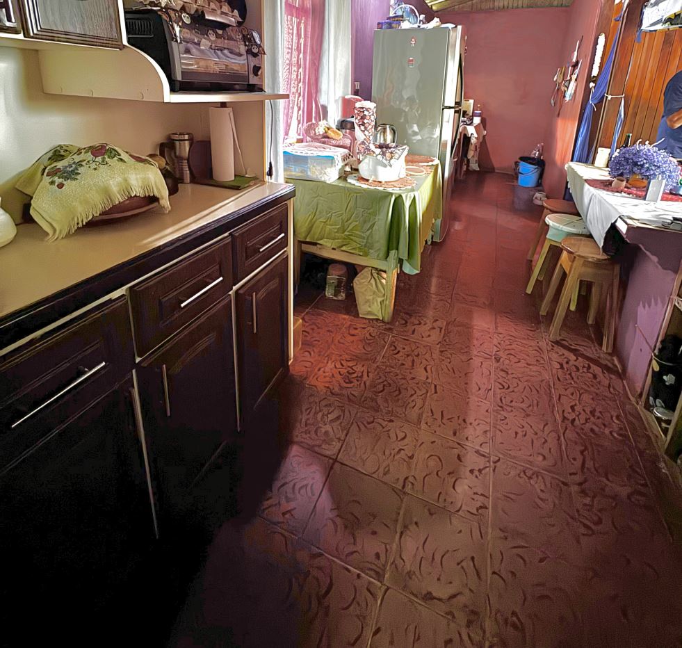 Casa: 3 habitaciones, 1 baño, sala y cocina integrada, cuarto de pilas