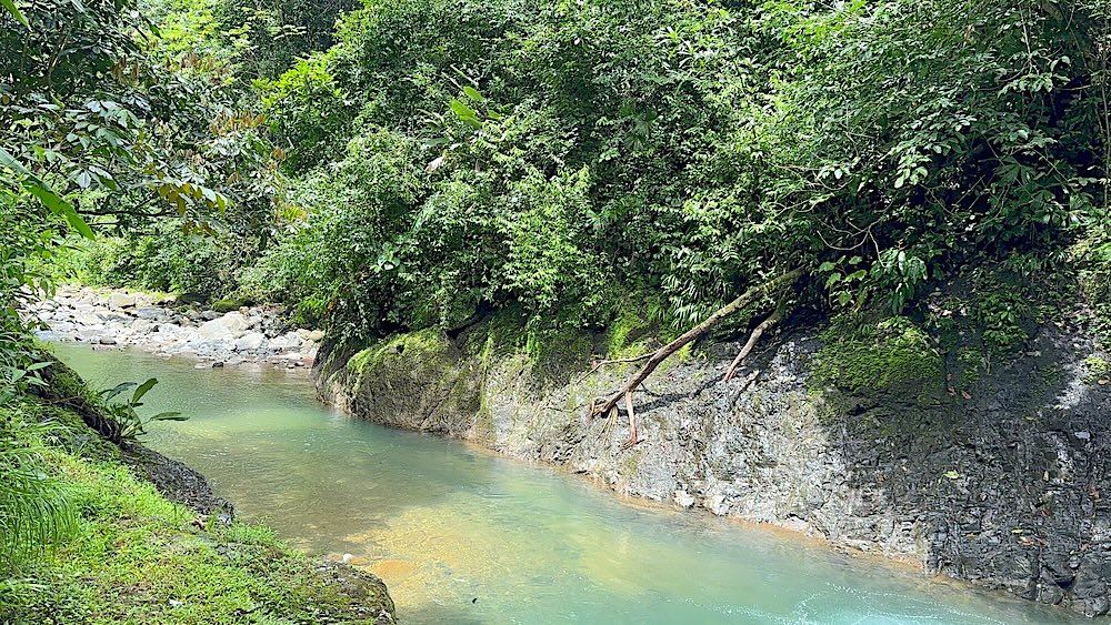 The fertile soil is already planted with bananas, plantains, mangoes, cacao, rambutan, oranges, and lemons. With its flowing river and sunlit clearings, the property also has excellent potential for off-grid living — including a micro-hydro system and solar energy with battery storage.