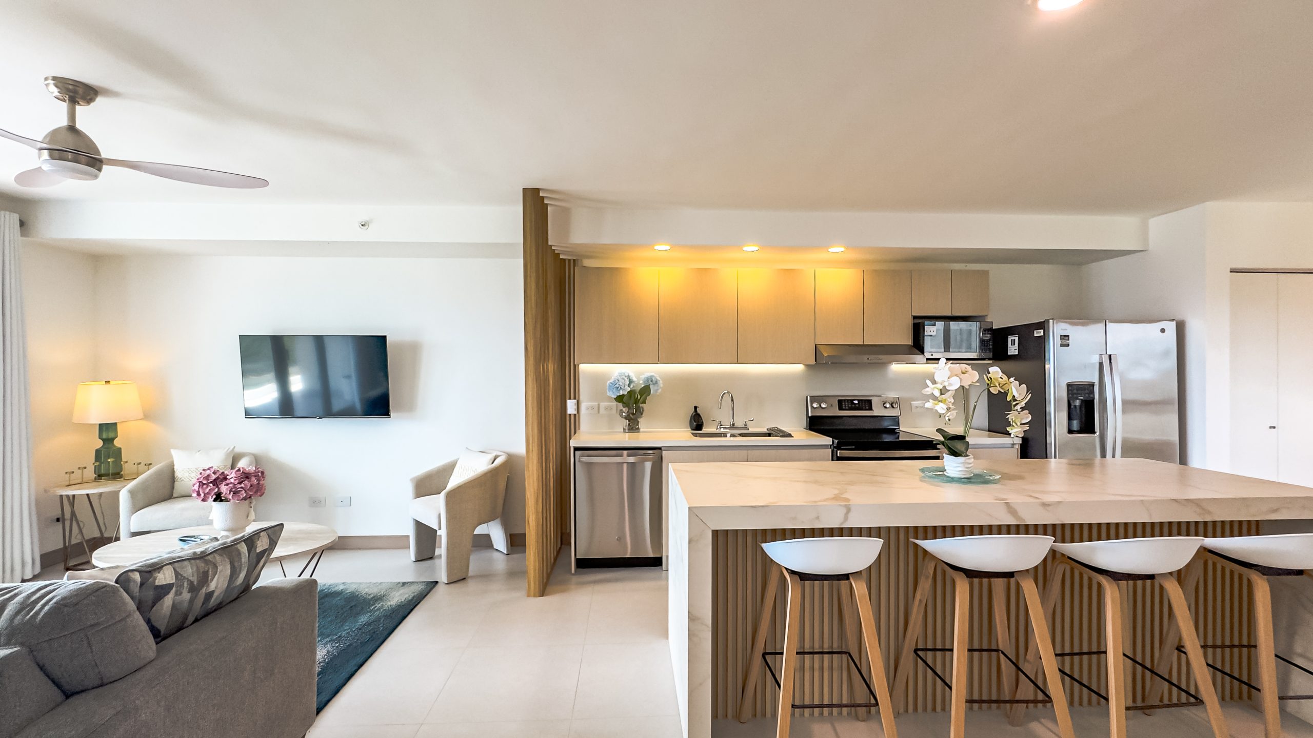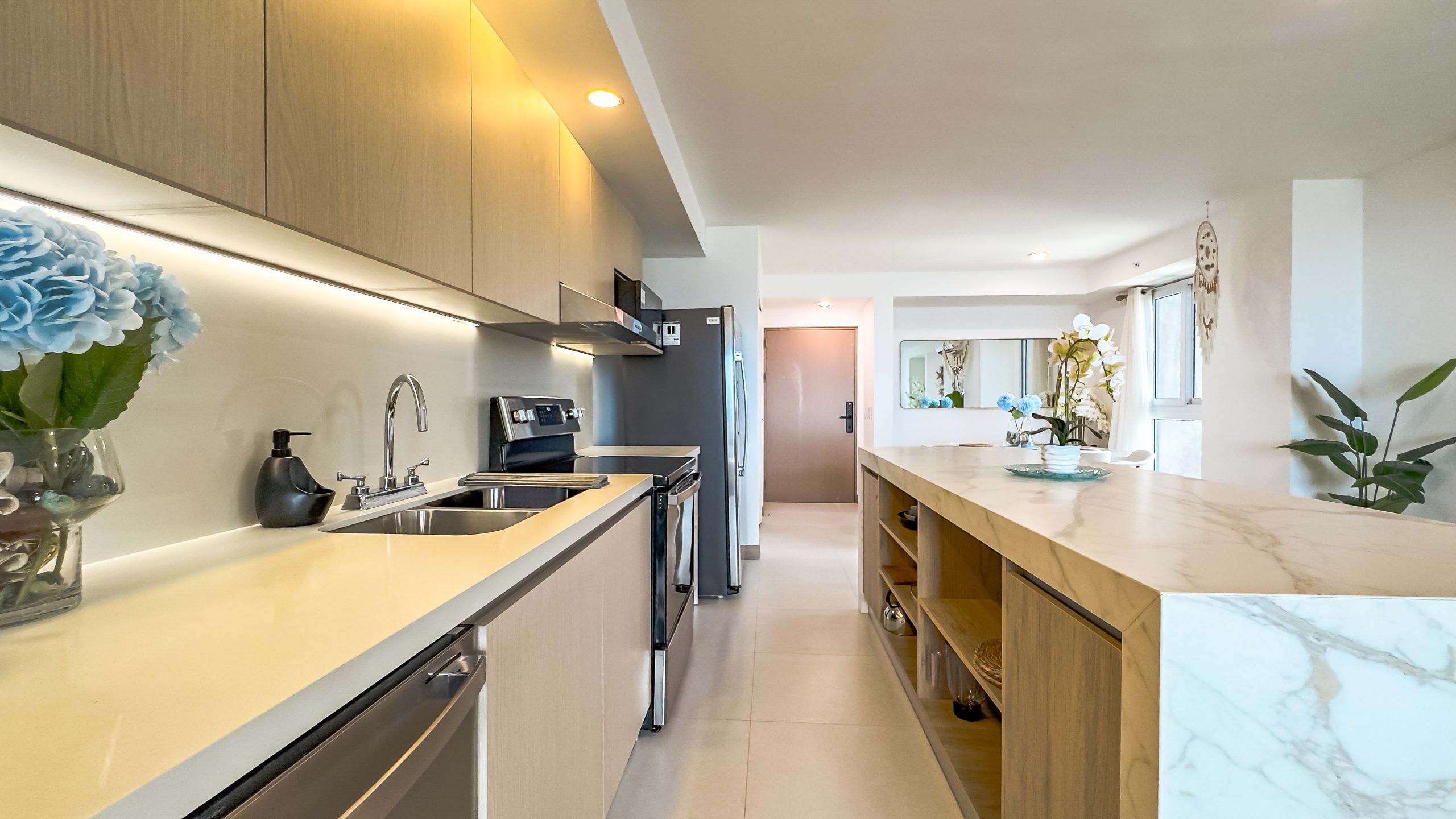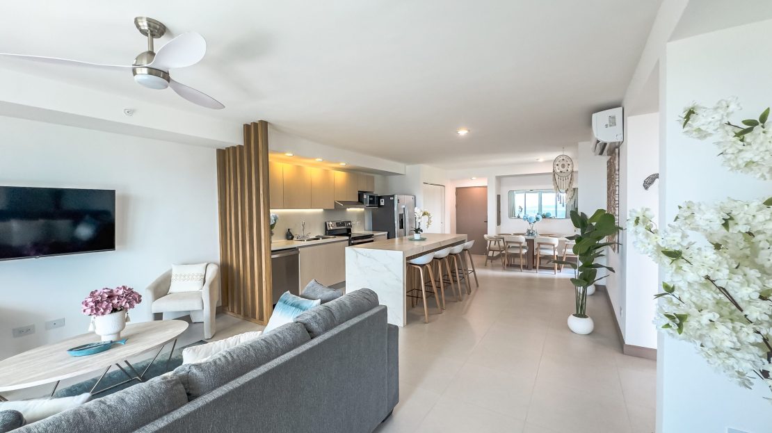 La propiedad cuenta con 2 habitaciones y 2 baños, completamente amueblada con un diseño contemporáneo y elegante, lista para habitar o generar ingresos desde el primer día. Cada espacio ha sido finamente decorado para brindar confort y estilo en un ambiente sofisticado.
