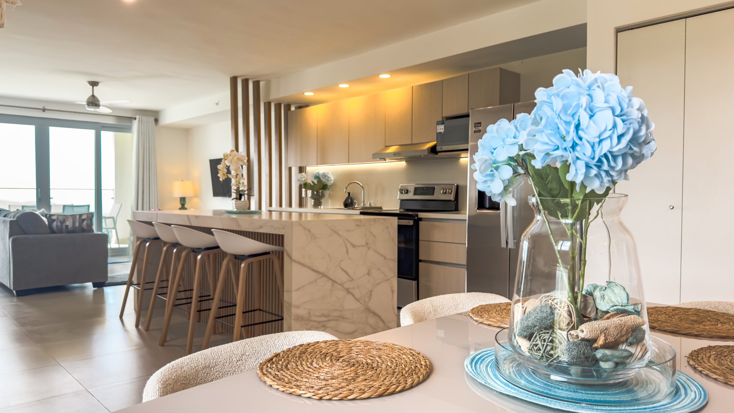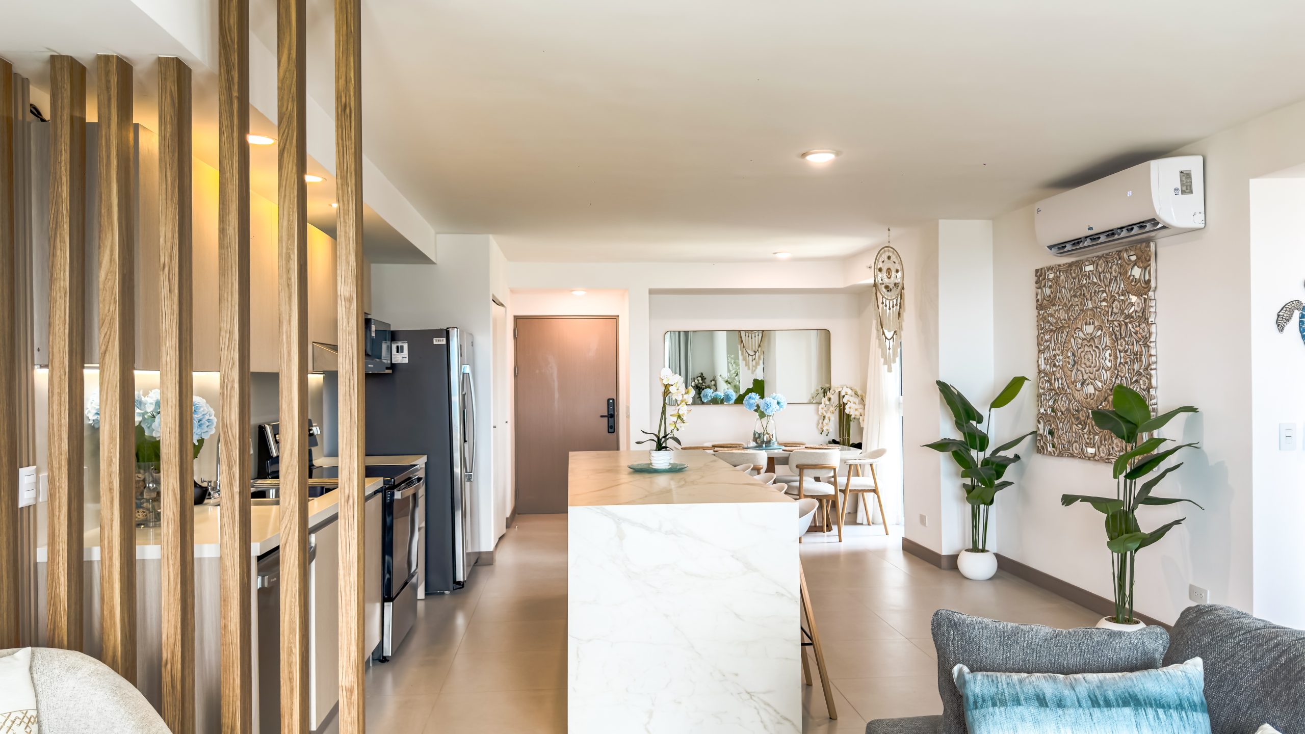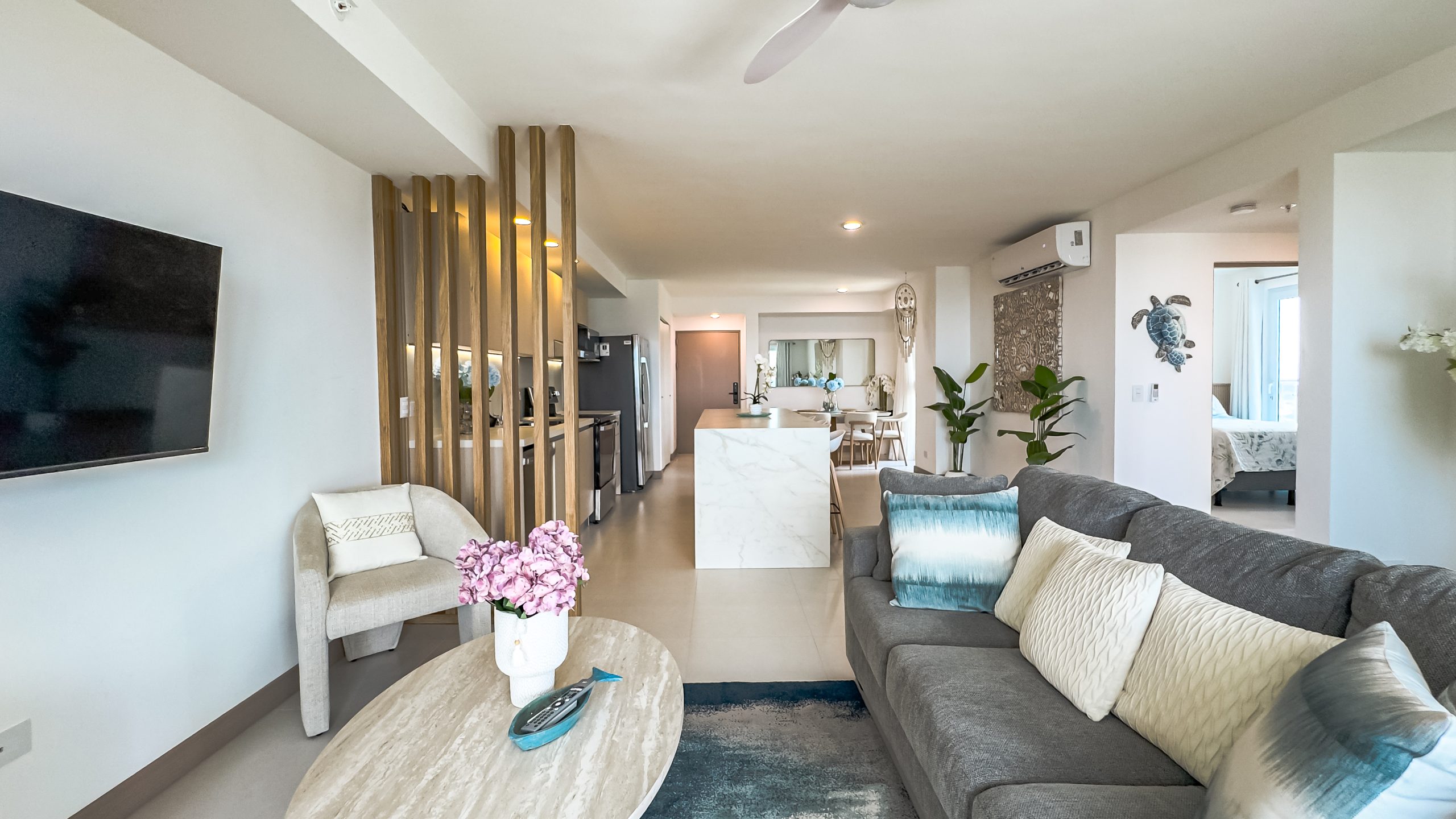 La propiedad cuenta con 2 habitaciones y 2 baños, completamente amueblada con un diseño contemporáneo y elegante, lista para habitar o generar ingresos desde el primer día. Cada espacio ha sido finamente decorado para brindar confort y estilo en un ambiente sofisticado.