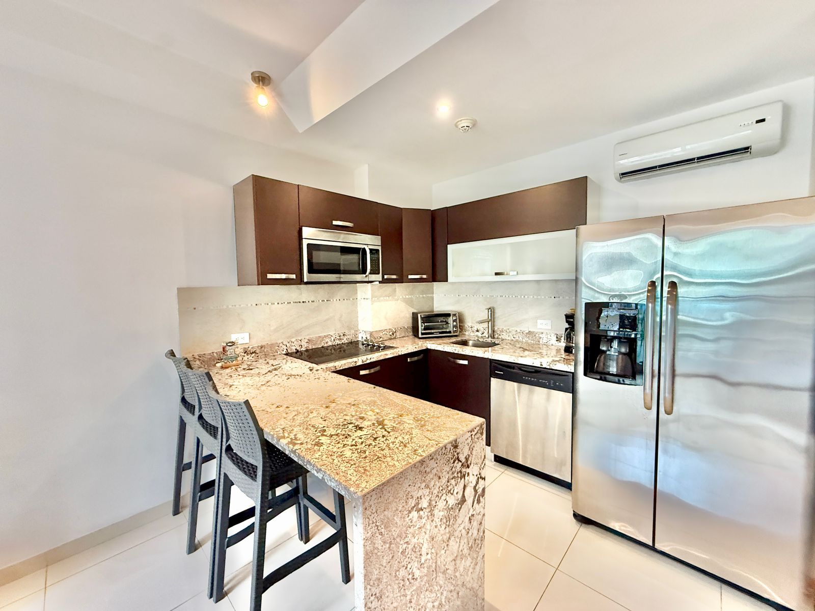 Al entrar, encontrarás un espacio moderno y acogedor con aires acondicionados nuevos, una cama de alta calidad y un diseño pensado para relajarte. Disfruta de tranquilas vistas a la piscina, además de impresionantes amaneceres y vistas a las montañas directamente desde tu condominio, una forma ideal de comenzar cada día en el paraíso.