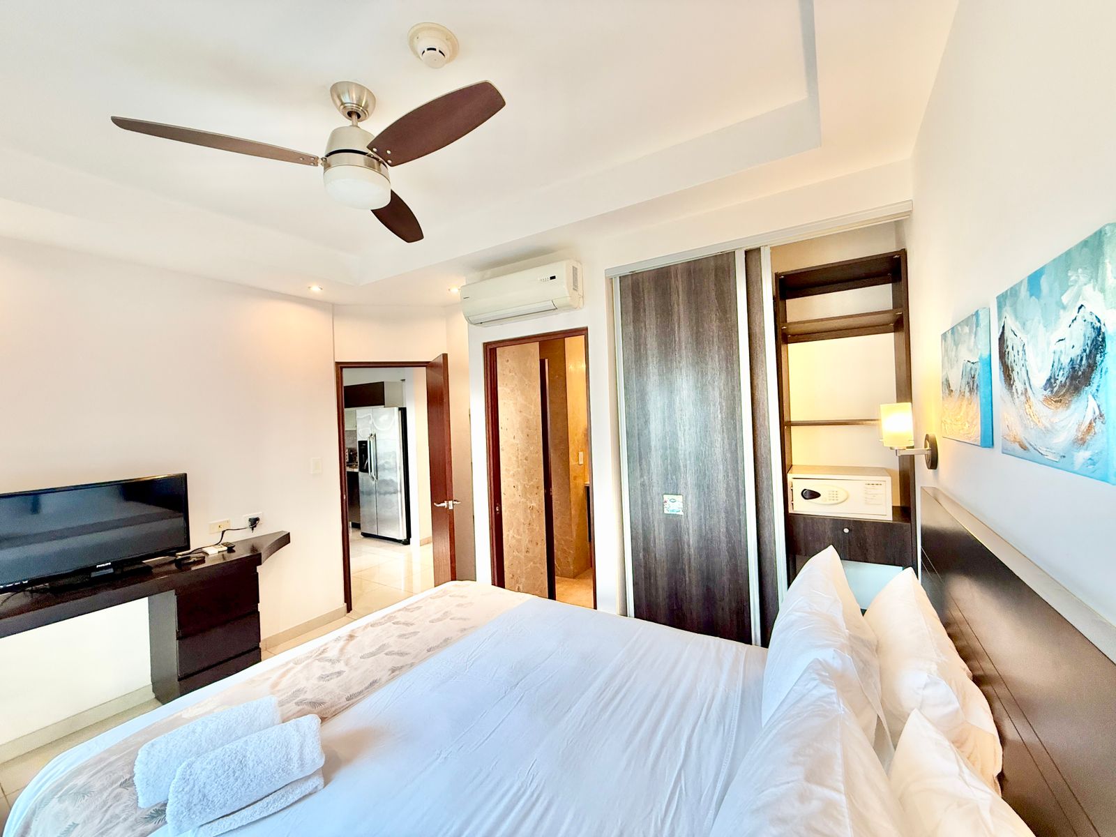En entrant, vous trouverez un espace moderne et chaleureux doté de climatiseurs neufs, d’un lit de haute qualité et d’un aménagement conçu pour la détente. Profitez de vues apaisantes sur la piscine, ainsi que de superbes levers de soleil et vues sur les montagnes directement depuis votre condo—un moyen idéal de commencer chaque journée au paradis.