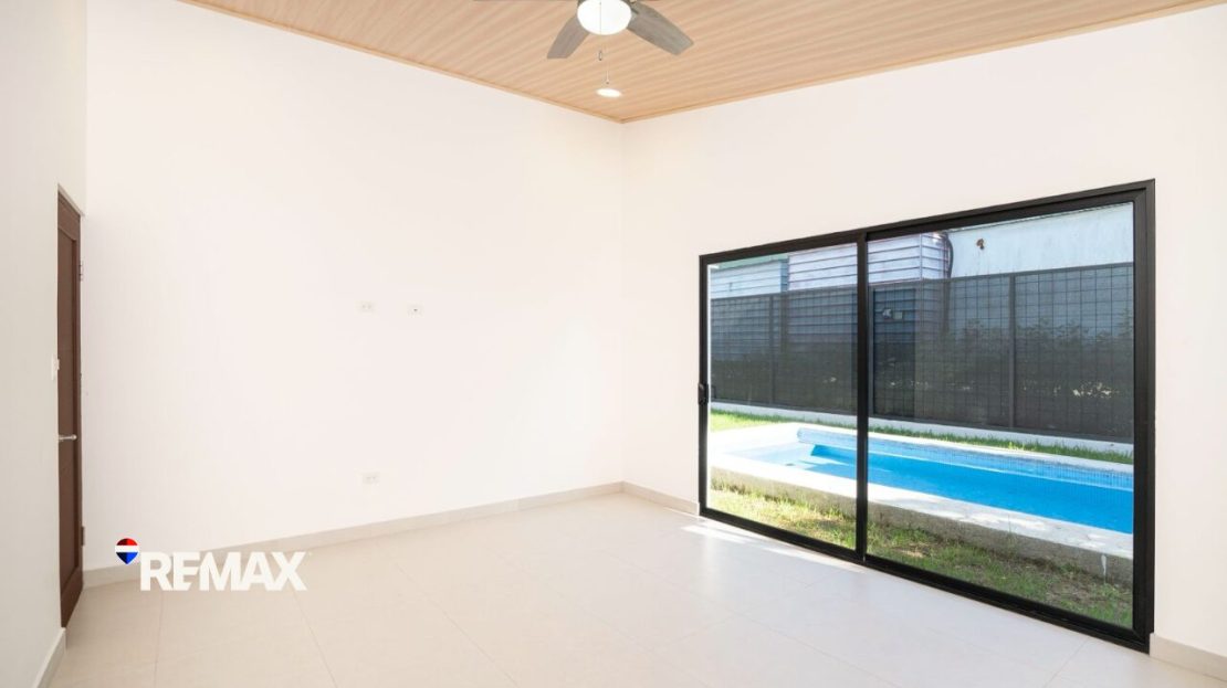 * Spacious master bedroom with walk-in closet and direct pool access