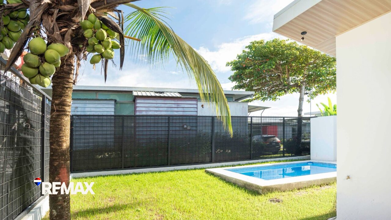 This modern 3-bedroom, 2-bathroom home is nestled in the secure Condominio Playa Hermosa, a peaceful gated community just 5 minutes from the iconic Playa Hermosa surf break and only 90 minutes from San José.