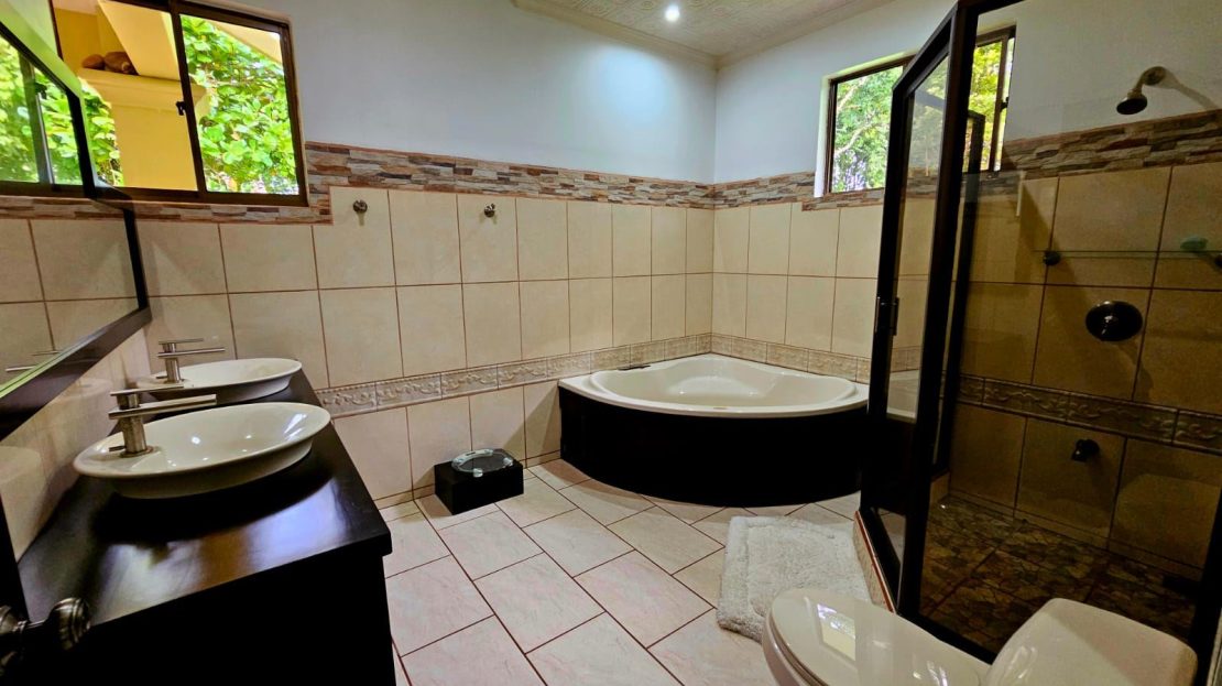 Outdoor Living Space: Step outside to discover a beautifully landscaped garden, complete with a relaxing jacuzzi. The expansive outdoor area is ideal for gatherings, barbecues, or simply enjoying the serene environment, surrounded by the lush greenery of Costa Rica.