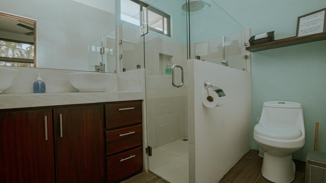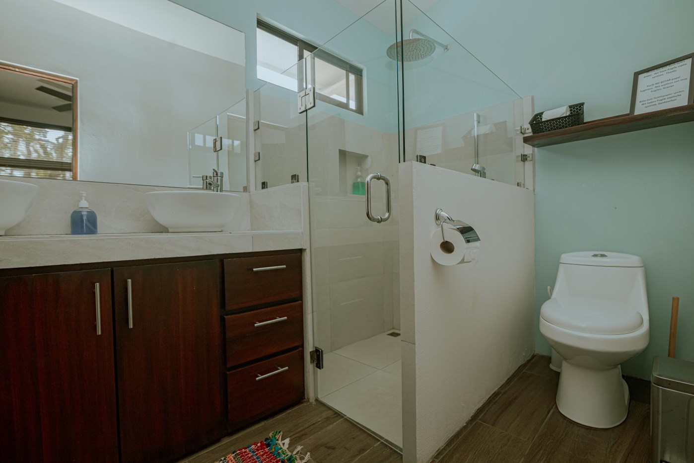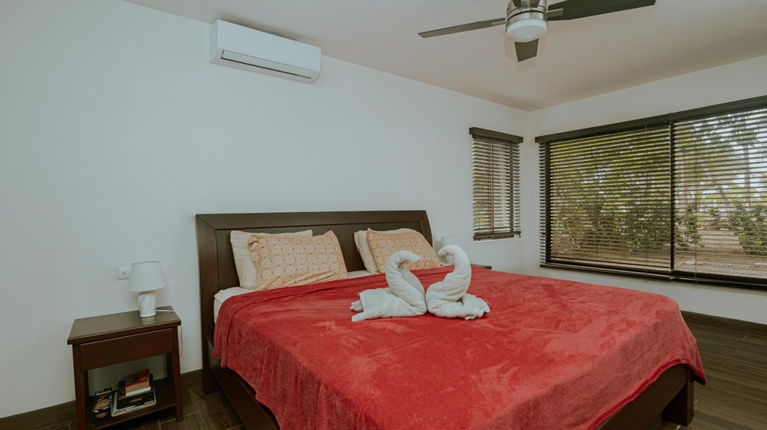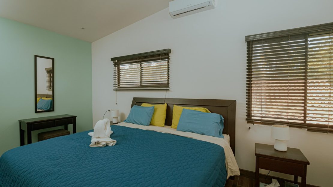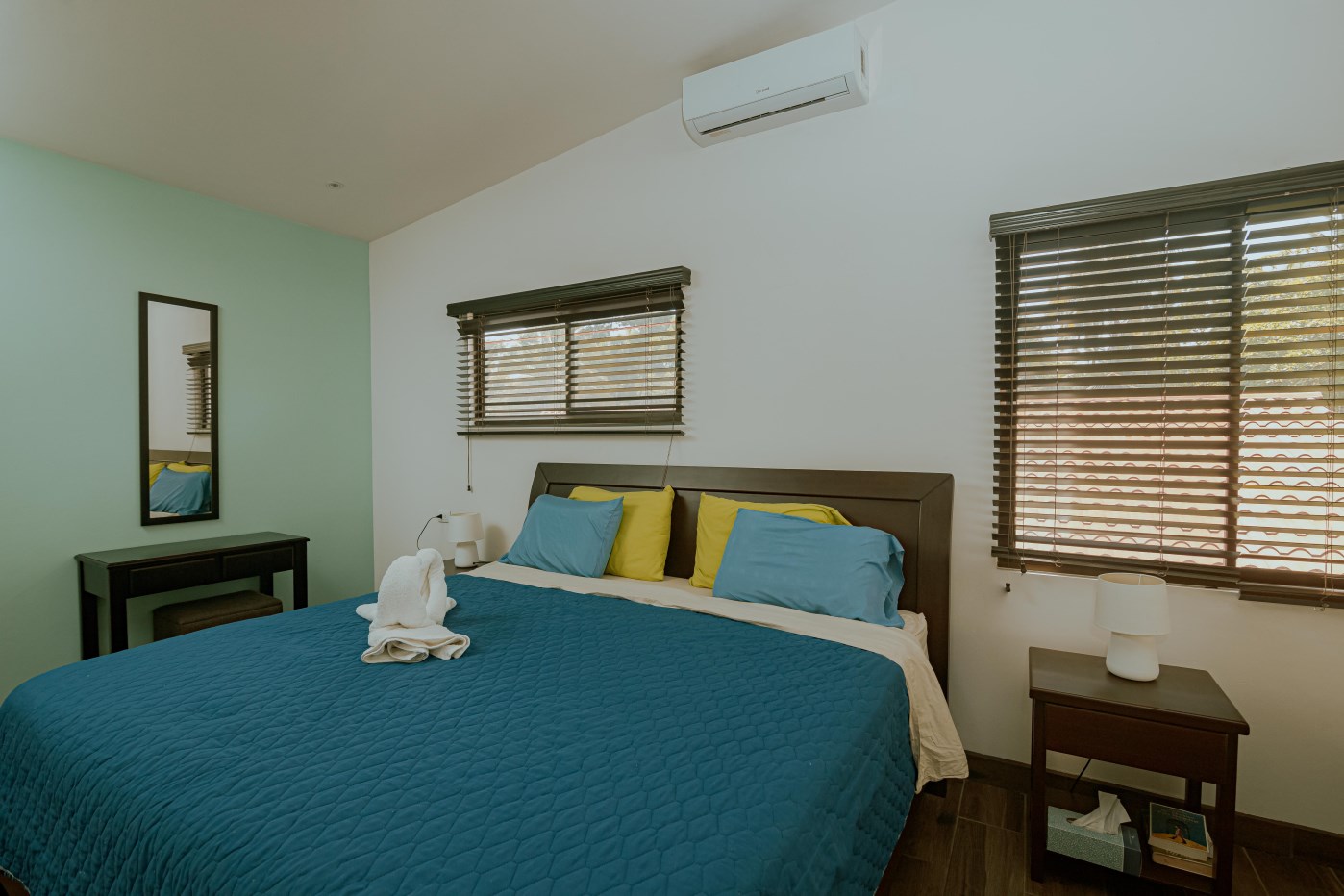 La suite principal es un oasis de paz, completa con una cama king-size y un baño en suite con ducha y lavabos dobles. Las otras dos habitaciones son amplias y cuentan con sus propios baños en suite, lo que hace que esta casa sea perfecta para hospedar a familiares y amigos.