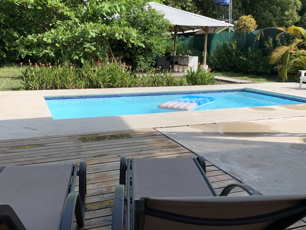 Outside, the private pool and surrounding deck are ideal for relaxing and soaking up the sun. The pool area is perfect for entertaining guests, complete with a covered section featuring a barbecue grill and outdoor seating. The spacious backyard allows for a multitude of different projects and provides direct access to the estuary. The ample space allows for a construction of a guest house or an additional rental unit, playground, or expansion of the relaxation zone.