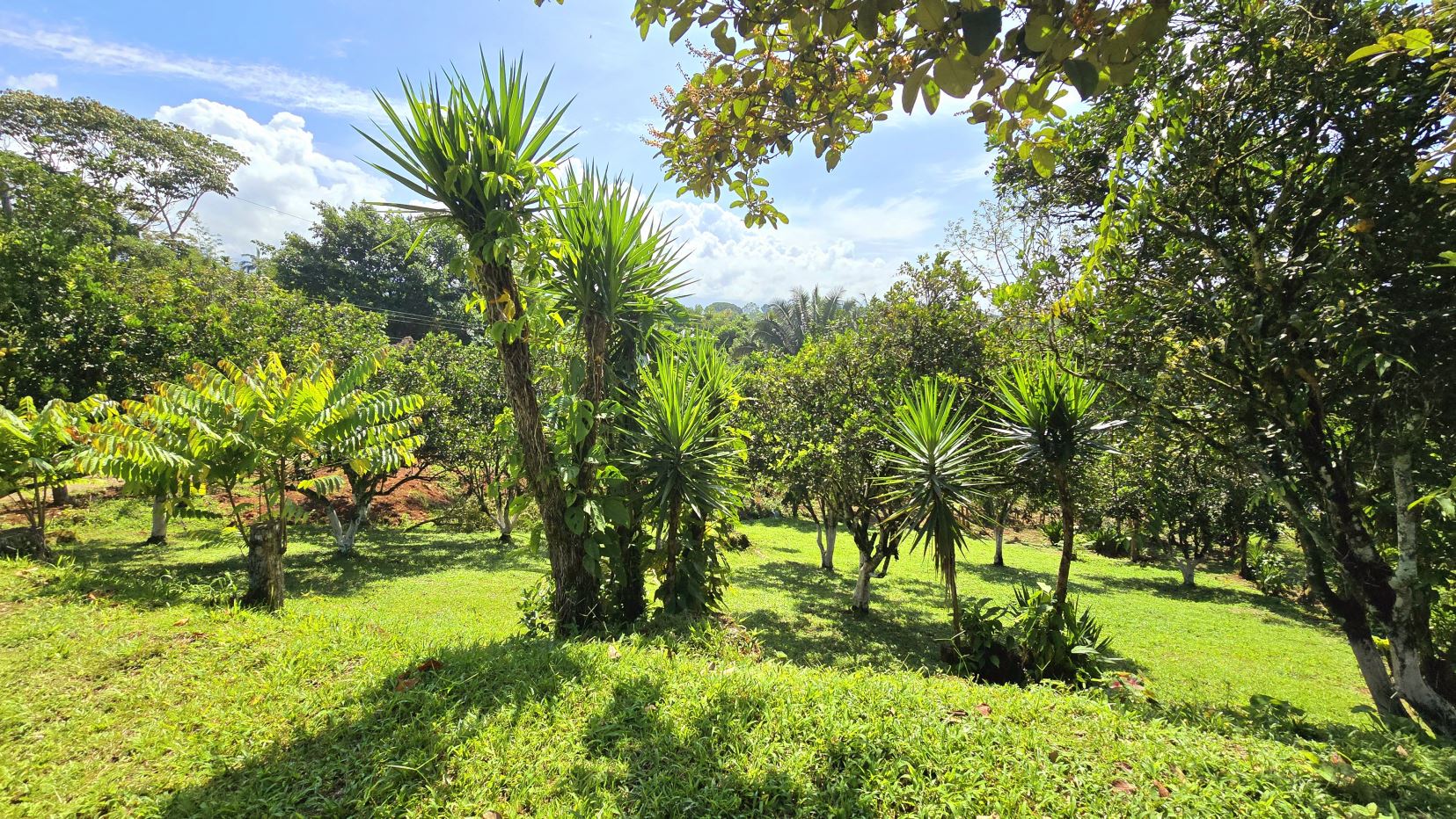 Zona verde con árboles frutales (naranja, limón y más)