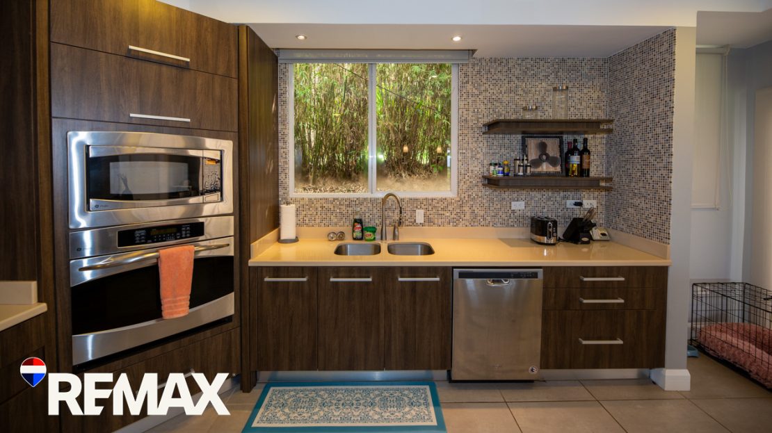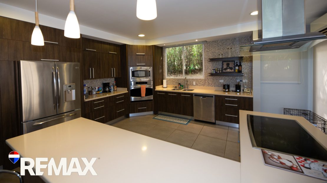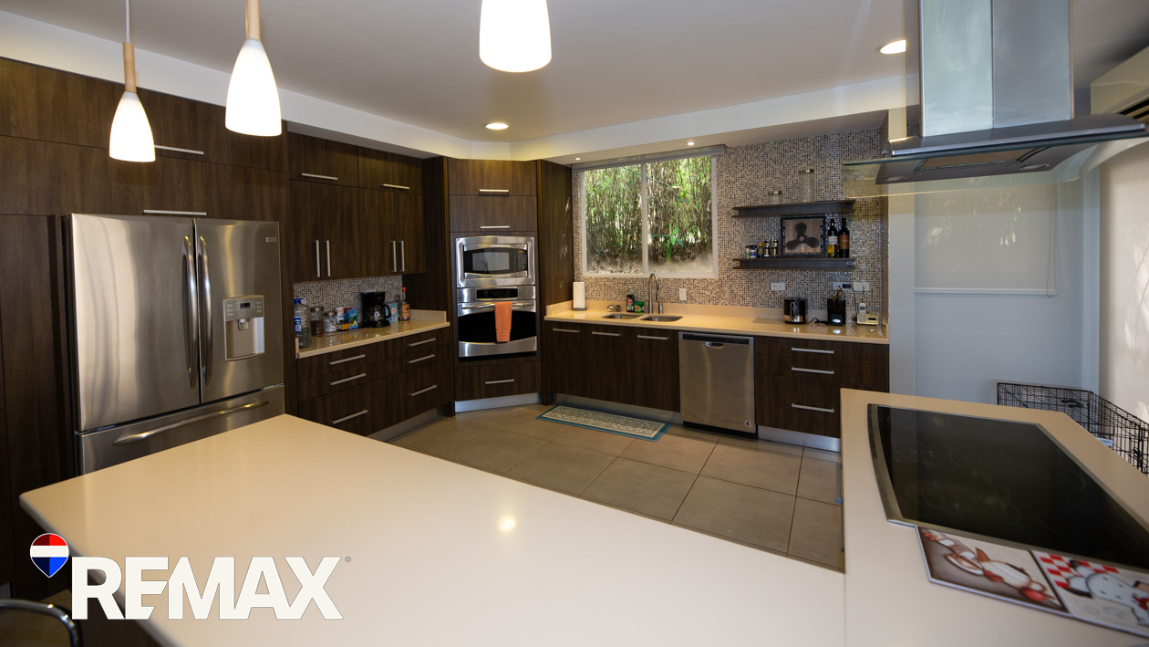 There’s a separate utility/laundry area, built in closets even a downstairs full bathroom with an exterior door to the pool area to keep the inside floors dry during those pool parties! The huge kitchen is fabulous with top of the line appliances, tons of cabinet space, a wrap around island with quartz counter tops and induction stovetop with an extractor.
