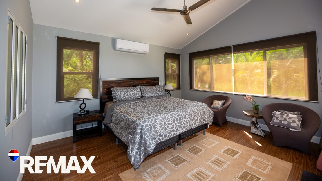 Expect the best from this stunning ocean view home that has it all! Located in the Gated and Guarded Community of Costa Esterillos, with a low HOA fee. Enjoy the breath taking panoramic ocean view from all 3 master suites. The property includes an adjoining lot to insure that the views will be protected and privacy assured.