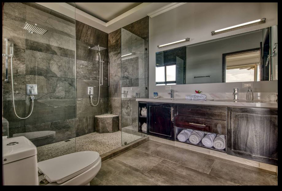 Master Bedroom Retreats: Two suites with direct access to the pool deck and breathtaking views, featuring double showerheads and walk-in closets.