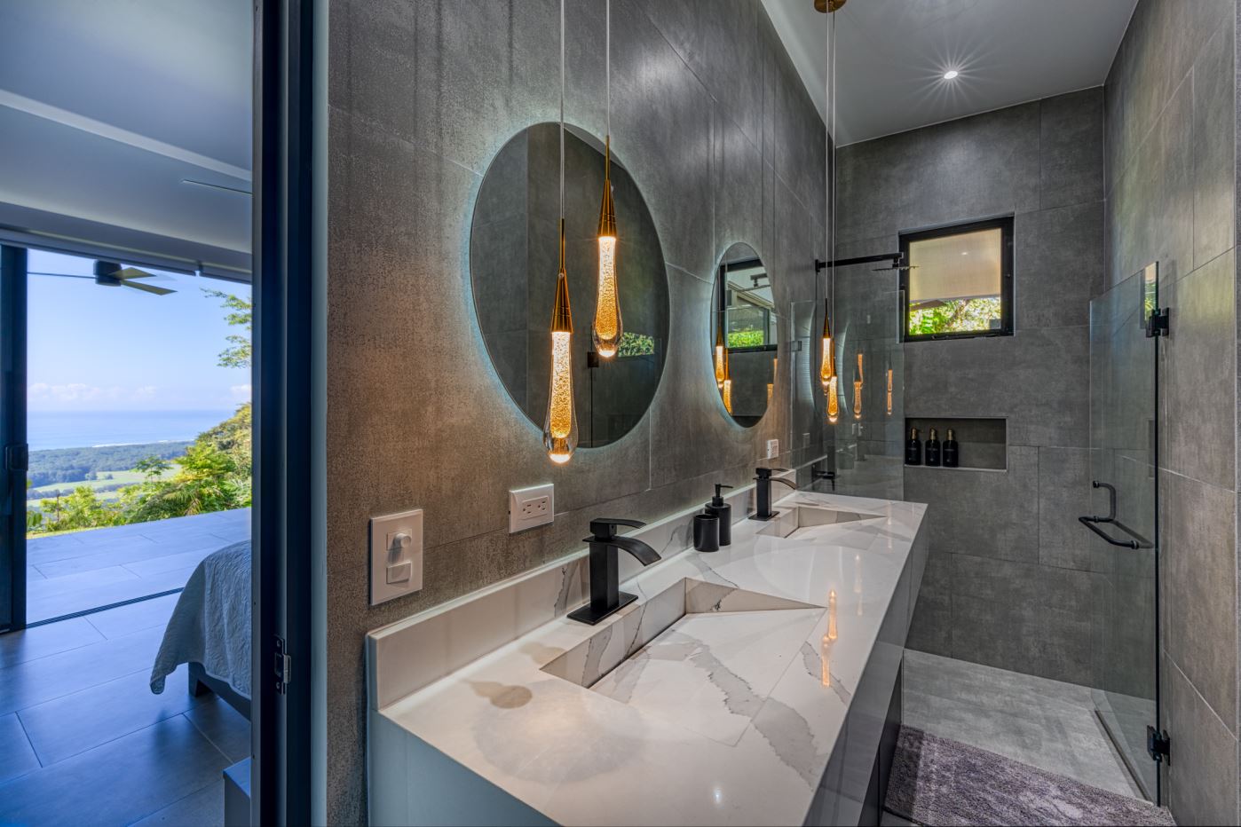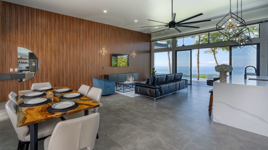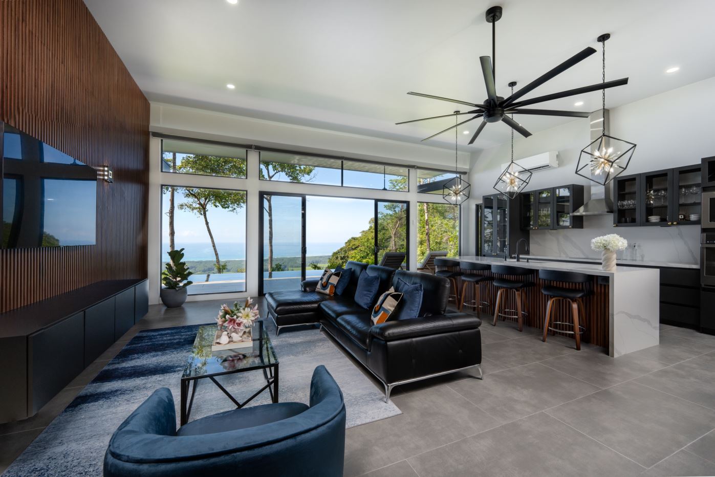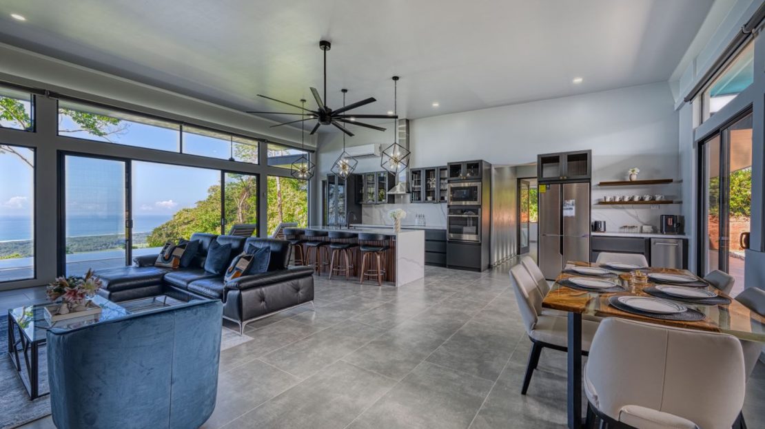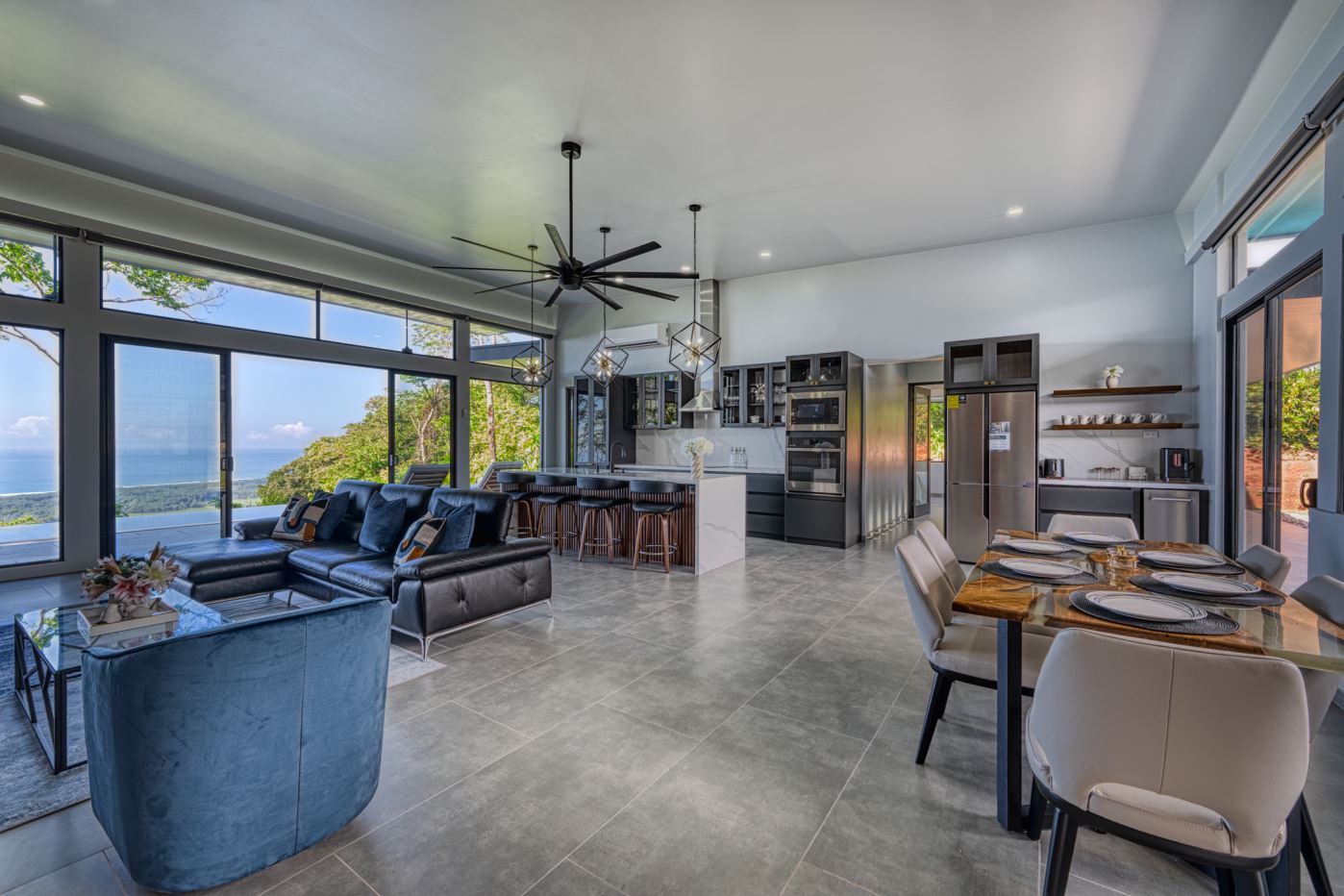 Ubicada sobre una meseta plana a 1,000 pies sobre el nivel del mar, esta impresionante construcción nueva ofrece vistas panorámicas inigualables tanto del Océano Pacífico como de las montañas que la rodean. Diseñada como un refugio de concepto abierto en un solo nivel, cada habitación está cuidadosamente orientada para maximizar las vistas al mar y dejar entrar la fresca brisa marina.