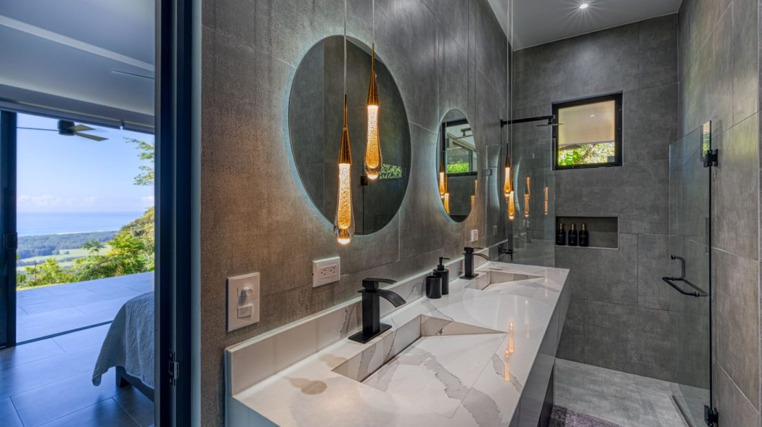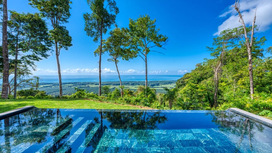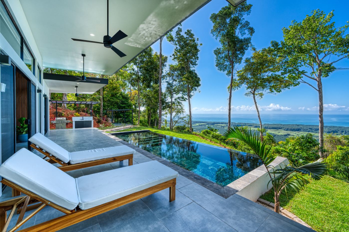 Beauty Perched on a flat plateau 1,000 feet above sea level, this stunning new construction offers breathtaking panoramic views of both the Pacific Ocean and the surrounding mountains.
