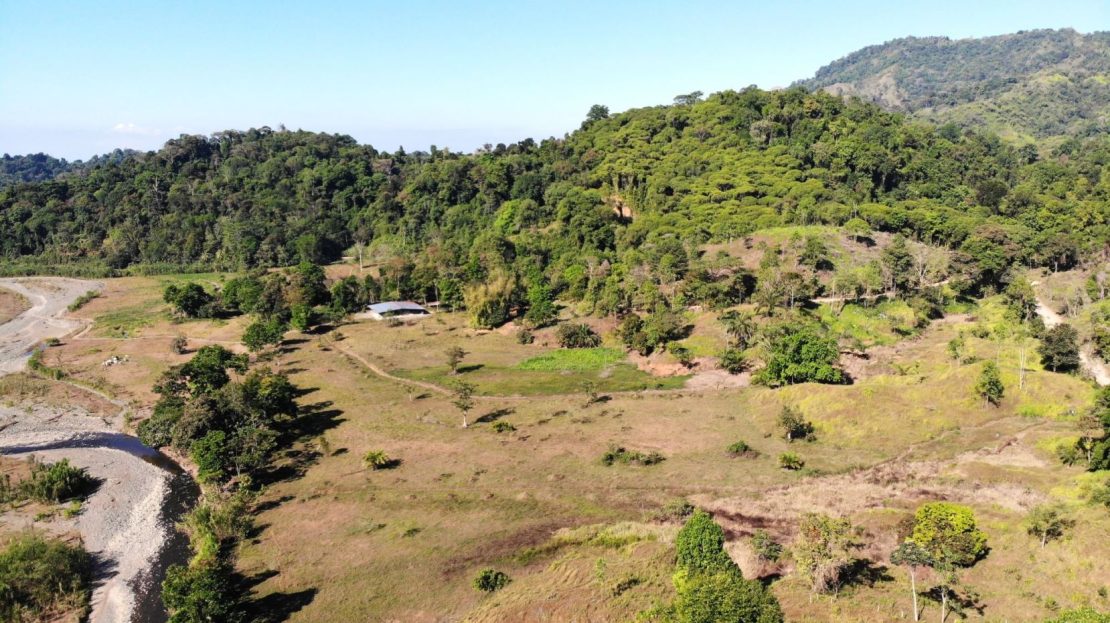 Área total: 173 ha / 427 acres – Abarca una extensión considerable, con un 70 % de bosque tropical prístino y un 30 % de terreno urbanizable.Infraestructura: 2 casas para trabajadores, 1 almacén seguro, 1 establo para vacas o caballos, agua de manantial en los edificios.Paisaje: El terreno tiene una suave pendiente y se vuelve más plano hacia el río, lo que realza las vistas panorámicas de la propiedad.Características hídricas: La finca está bordeada por un río, que proporciona una fuente de agua natural y pintorescas vistas. Múltiples arroyos pequeños y limpios con pequeñas cascadas se encuentran dentro de la finca.Accesibilidad: Un camino público atraviesa la propiedad (2,5 km / 1,55 millas), lo que garantiza un fácil acceso y conectividad. Hay red eléctrica disponible a lo largo del camino que cruza la finca. Título de la propiedad: El terreno está completamente inscrito en el Registro Nacional de Costa Rica.Planos de la propiedad: Los planos de esta propiedad se midieron recientemente en 2023 y se inscribieron en el Registro Nacional de Costa Rica en 2024.Potencial de desarrollo
