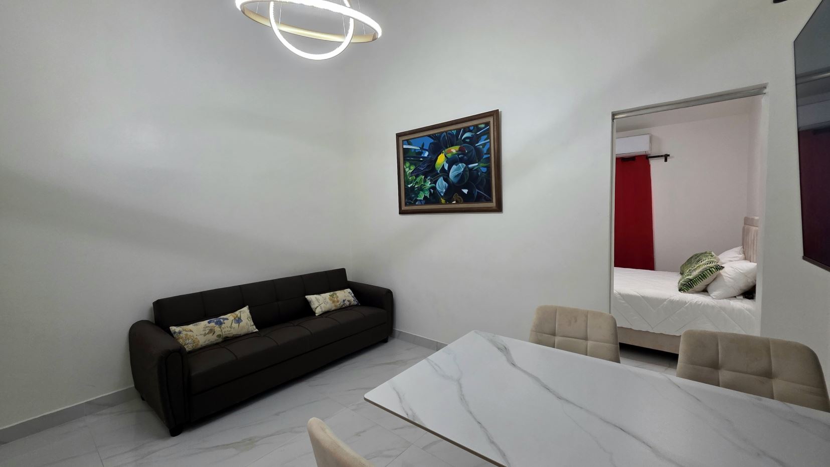 Área de sala incluye un sofá cama, proporcionando espacio adicional para dormir