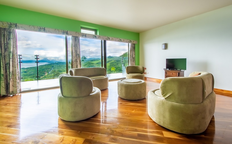 Set on a private hilltop overlooking Lake Arenal, this condo offers stunning views of the lake and the Arenal and Tenorio volcanoes.