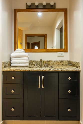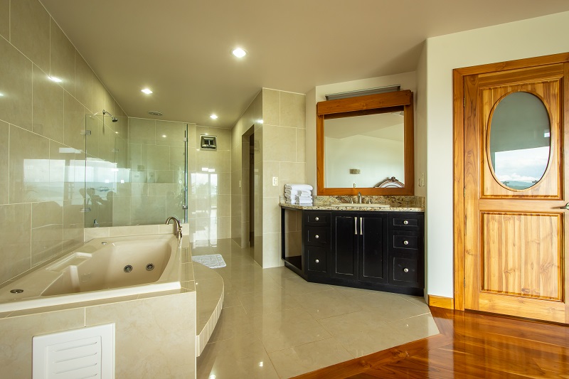 The light and spacious design of this condo begins with the large open plan kitchen fully fitted with high spec appliances and an island breakfast bar, and which opens out onto a wood floored furnished living area. The master bedroom has a built in fireplace, a walk in closet and a glass sliding door onto the Lake facing balcony. This unit is a work of art with Teak and Guanacaste floors.