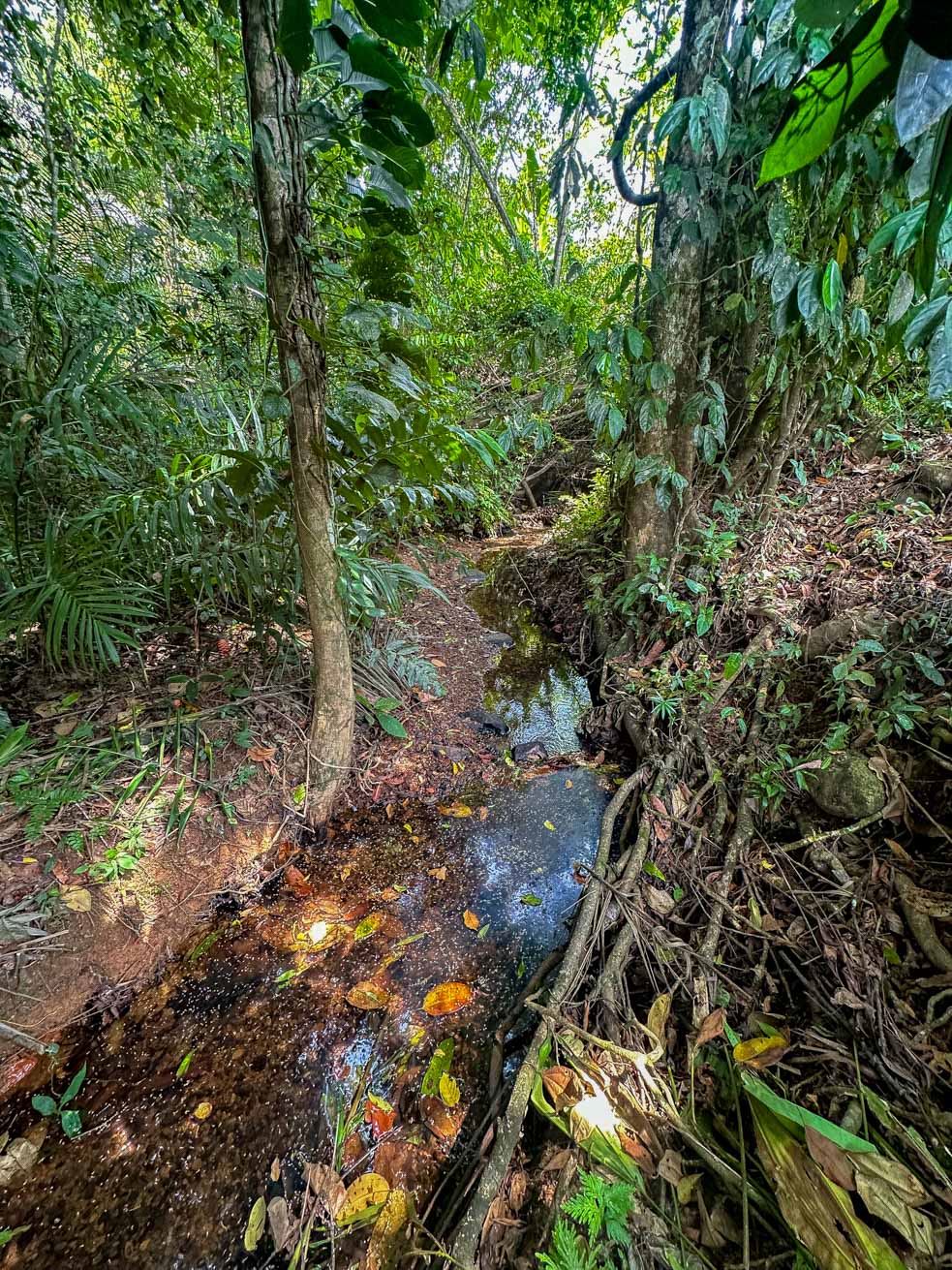 The lot’s 23 Acres of beautiful jungle-covered land are blessed with both flat and elevated sections, stunning ocean & jungle views, refreshing ocean breezes, and a creek meandering through the property. The rainforest cover is tall and thick with varieties of plants and trees, some of which are ancient & huge as they tower above the forests, the silent sentinels. A full compliment of jungle animals make their home here.