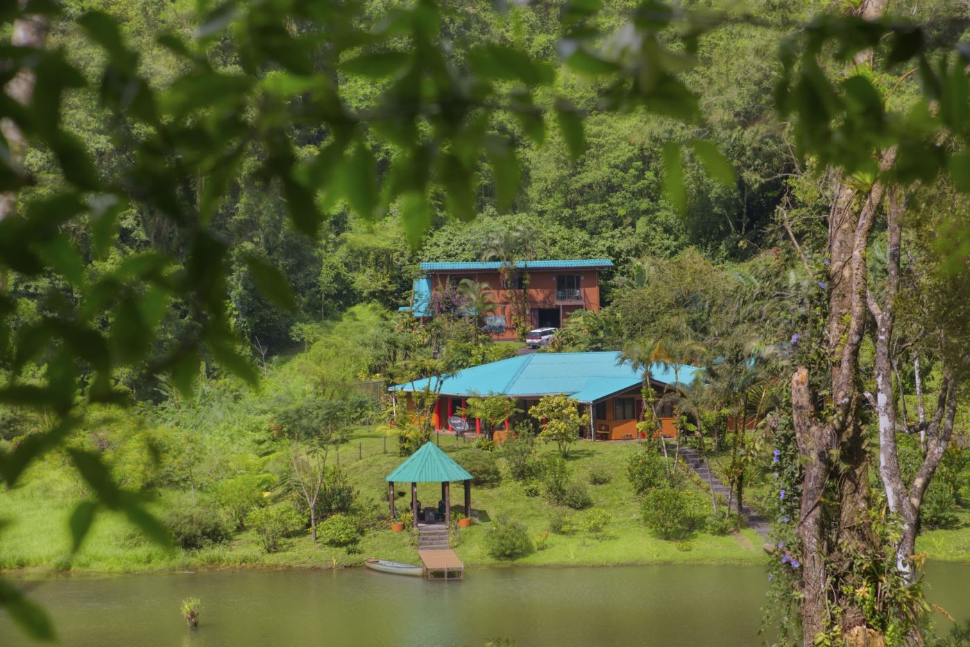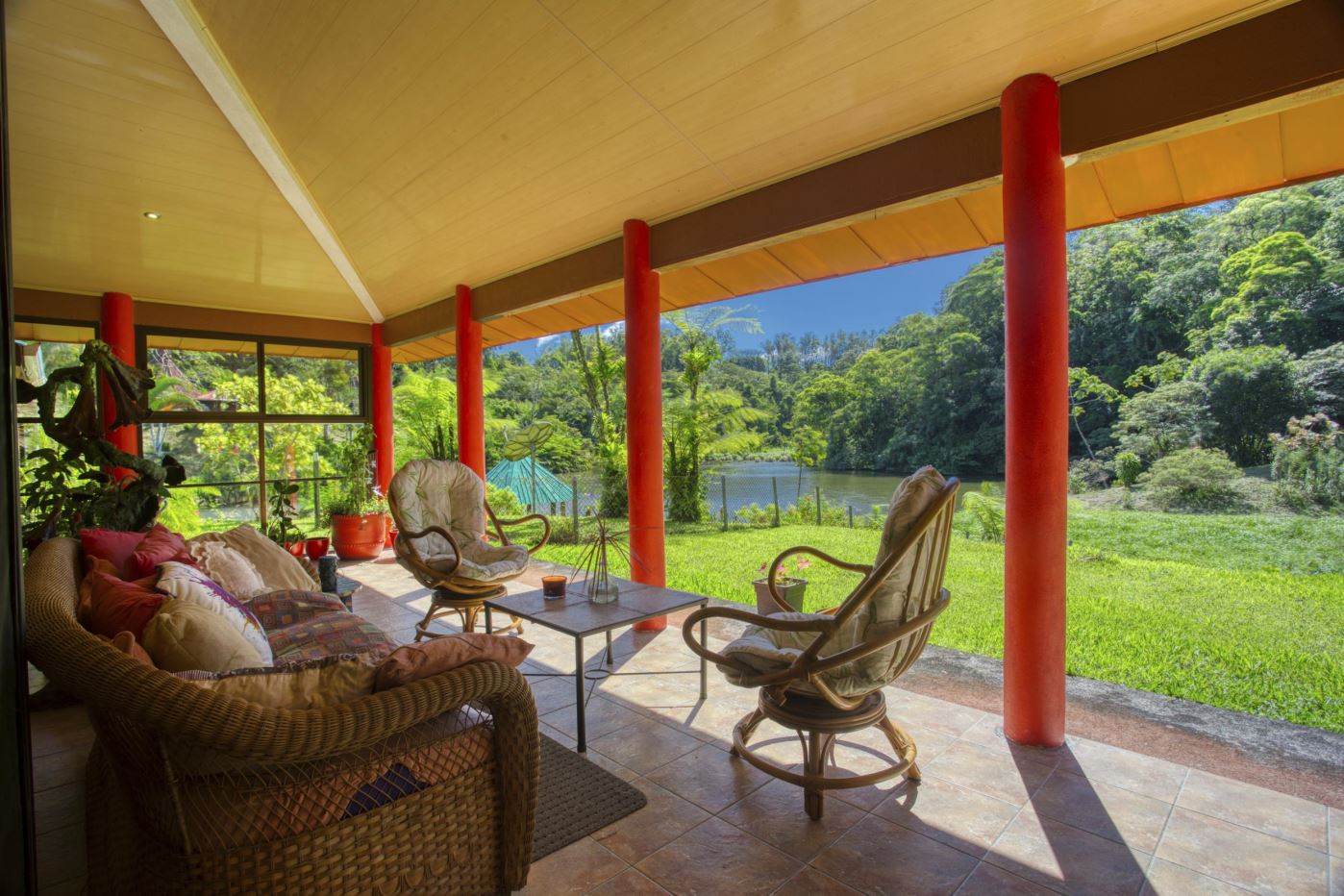 La propiedad incluye un jardín bellamente ajardinado, un lago privado, encantadoras áreas de descanso al aire libre y amplio estacionamiento para huéspedes.