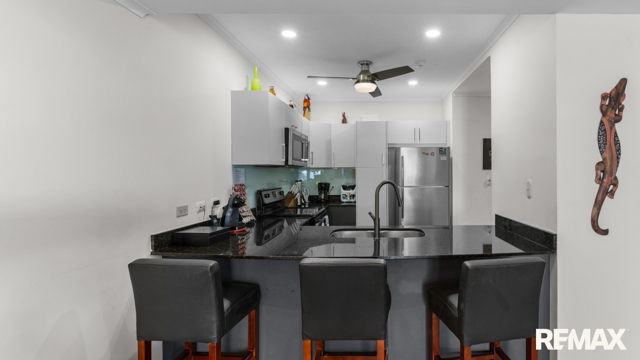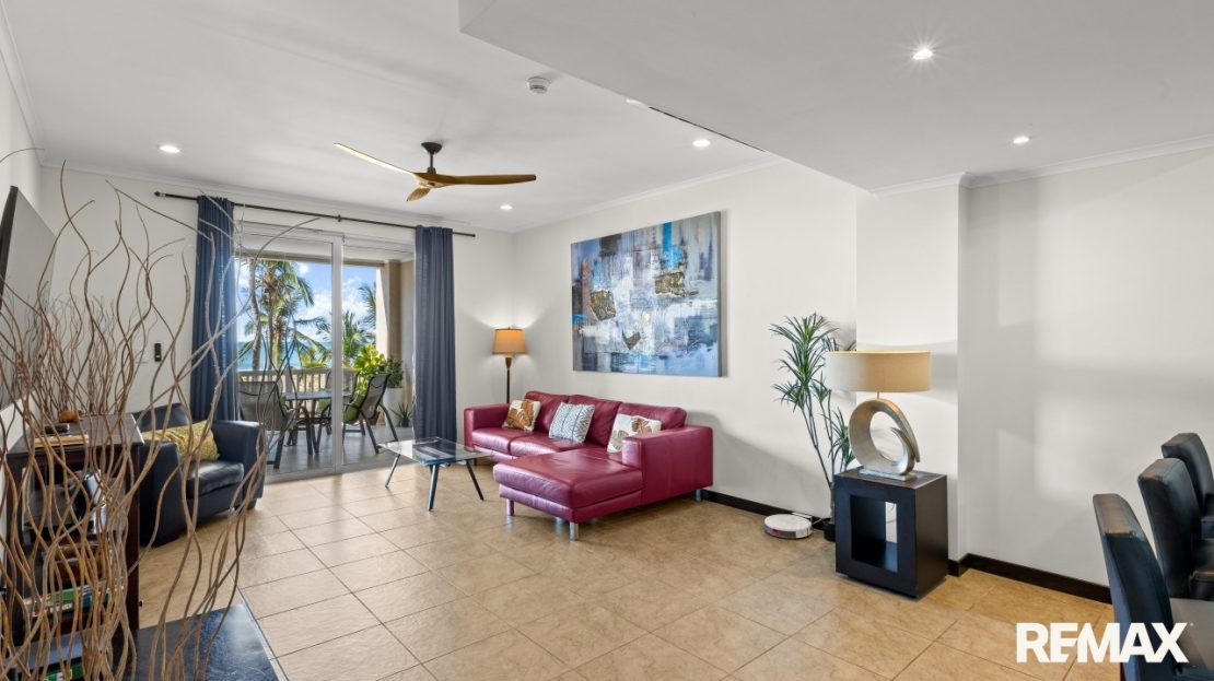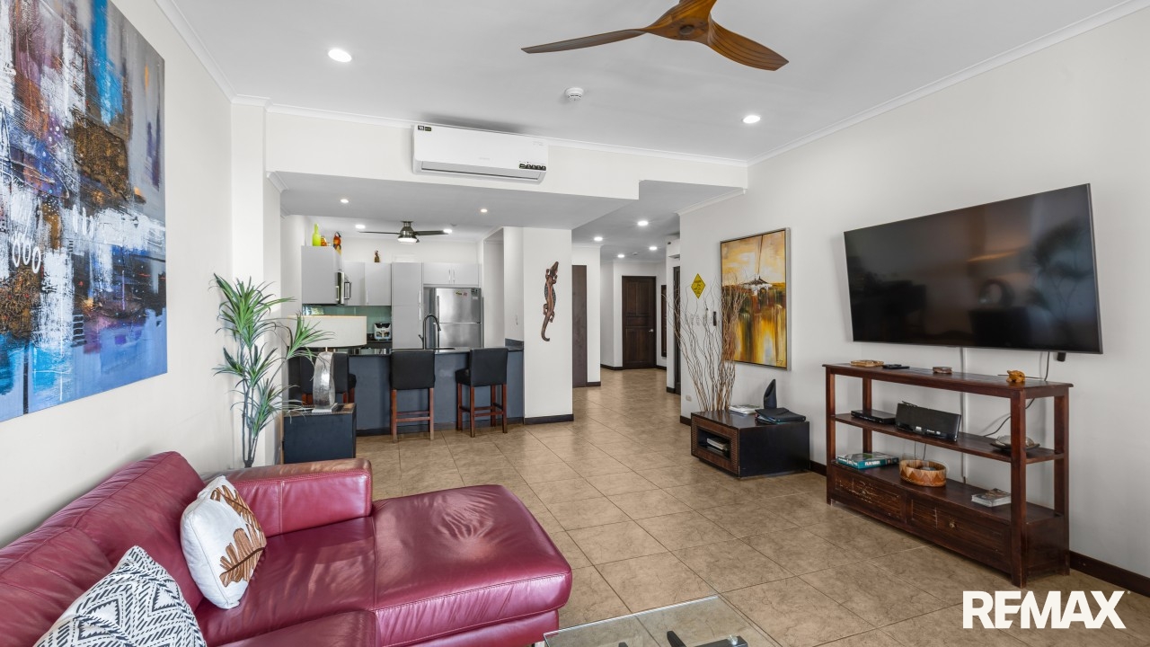 The Palms Direct Oceanfront Luxury Condo Status : Exclusive | Costa Rica MLS number: 104979The Palms 203 is a direct oceanfront condo located on the 2nd floor of the Palms building in Jaco Beach. This spacious residence features 2 bedrooms, 2 bathrooms, and 138 m² (1,485 square feet) of well-designed interior living space, complemented by one of the largest oceanfront terraces in Jaco.