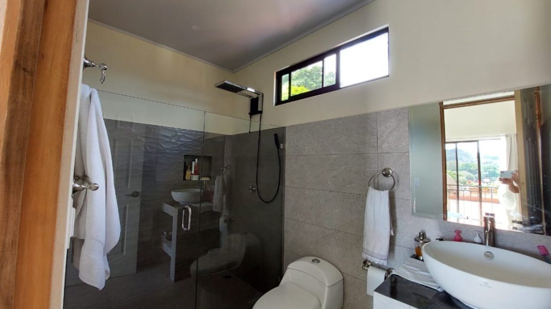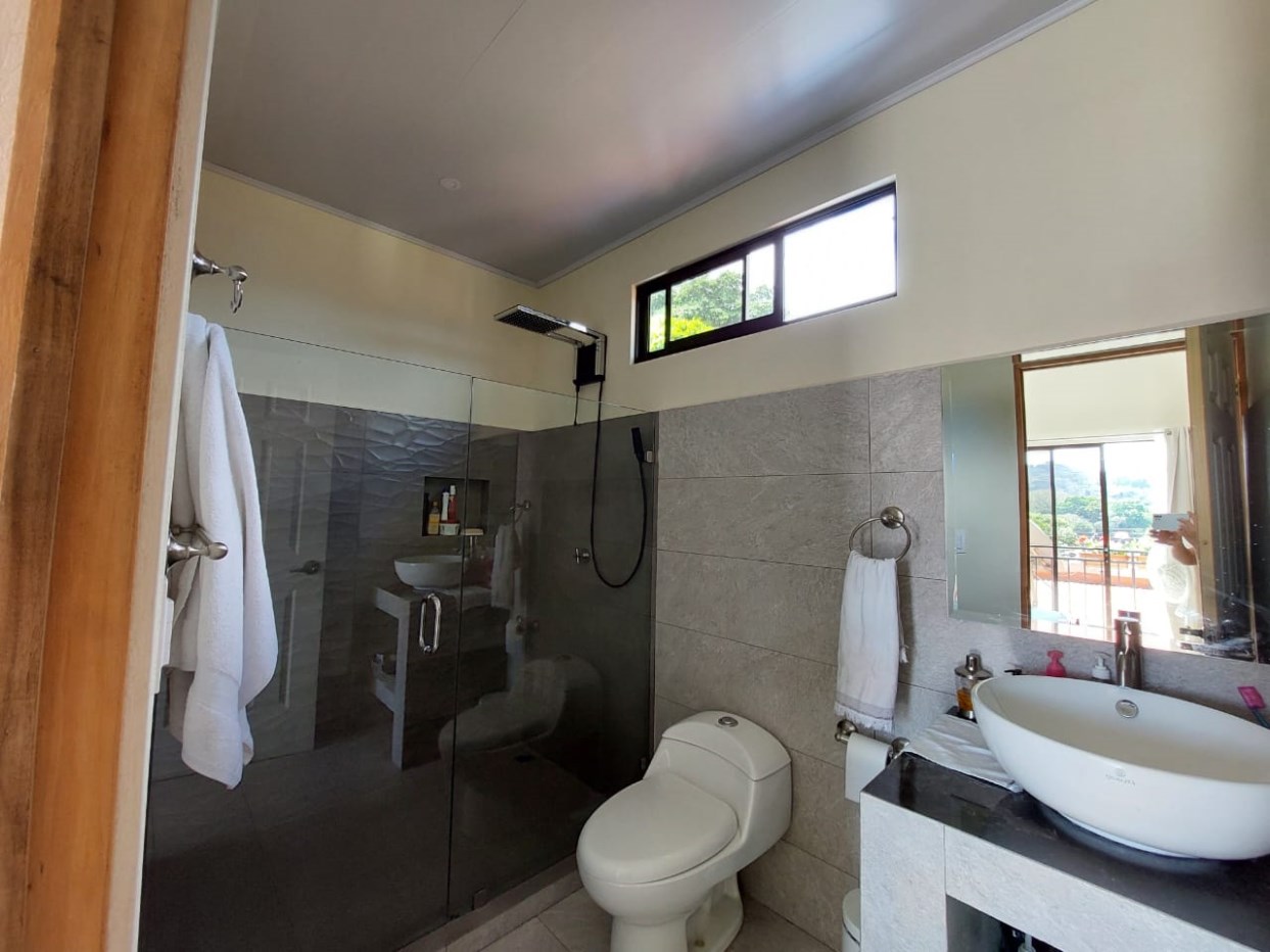 This two-story house is strategically located 11 minutes from Atenas center and 2 minutes from the nearest supermarket walking, in an easily accessible place for those who want a business or live near to town. The main house has 2 bed/2 baths modern finishes, open living and dining room, laundry room, air conditioning, private bathroom, walking closet and balcony in the main room. Large garage and patio. In addition: 1 house with 3 bedrooms and 1 bathroom to rent and excellent opportunity as an extra income! Also a 1 bed/1 bath apartment/studio that would work perfectly as a workshop or storage area. The property has a water tank.