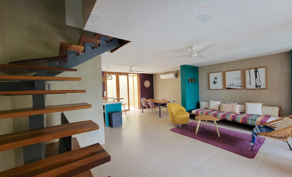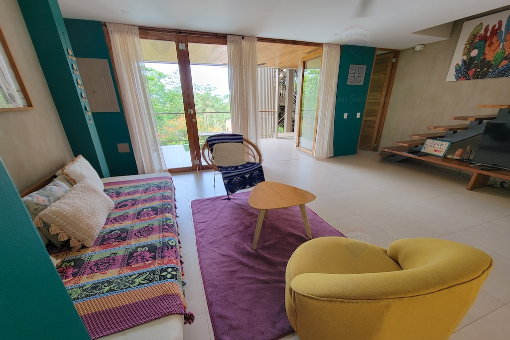 La Unidad #2 ocupa el segundo y tercer piso. La planta baja cuenta con una gran terraza, una amplia sala de estar, una cocina abierta, un patio exterior y medio baño. El nivel superior cuenta con 3 dormitorios y dos baños. El dormitorio principal tiene vistas increíbles al océano y al valle y tiene un balcón privado. Esta unidad se vende completamente amueblada, equipada y muy bien decorada con aire acondicionado en cada habitación.
