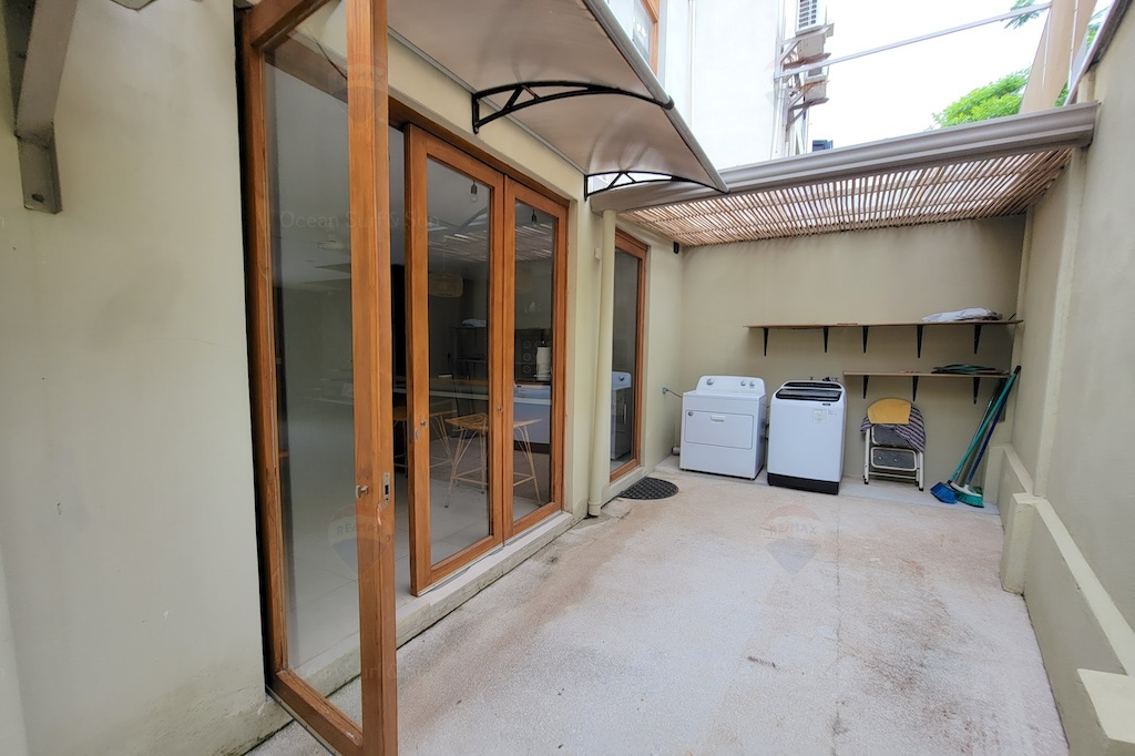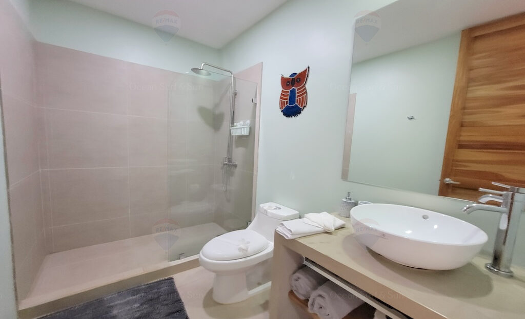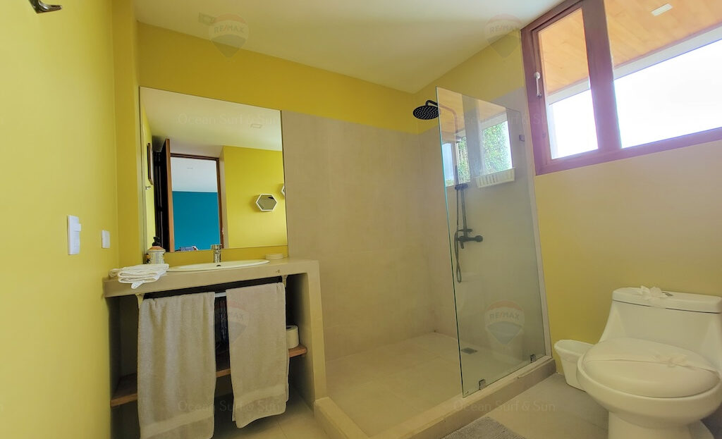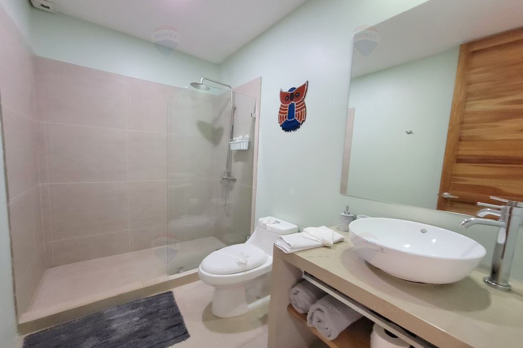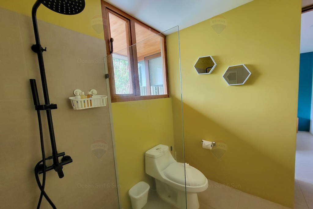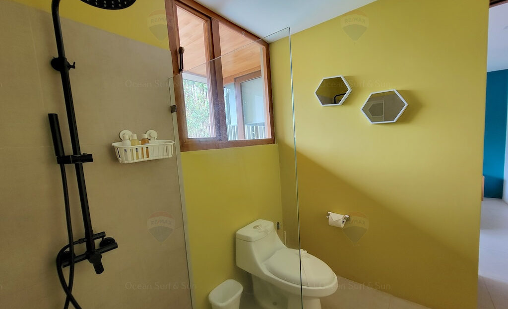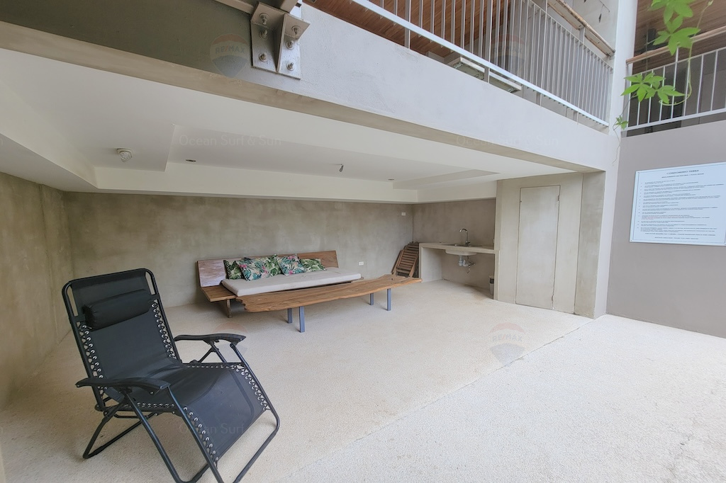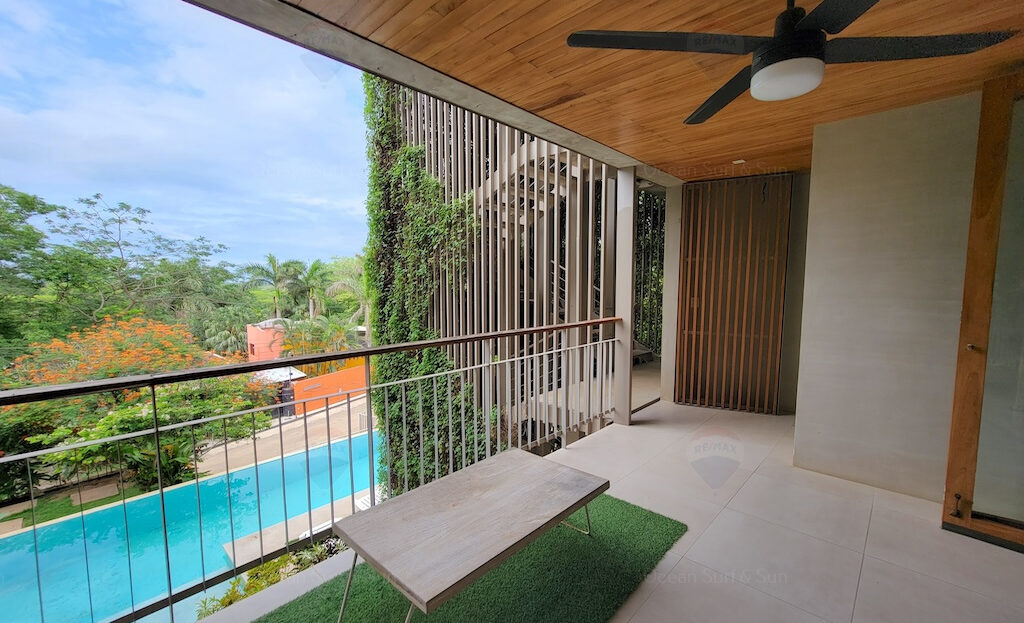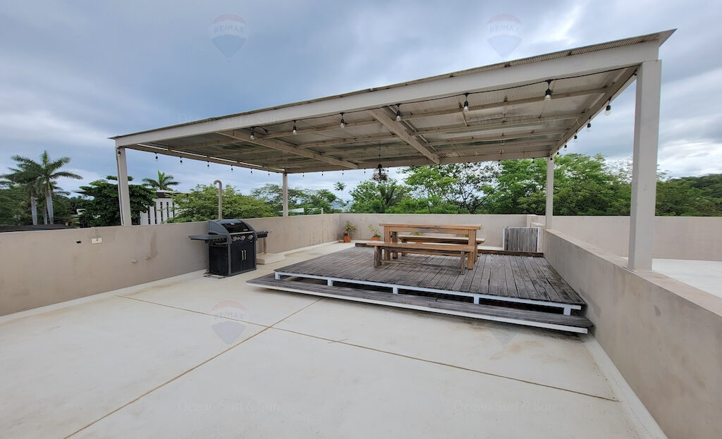 The great location, the high-quality construction with noble materials, and the elegance and modernity of this condo of 7 units make it very unique. Completed in August 2019, this complex is fenced in and secured by a guard on-site 24/7. You will enjoy the saltwater pool with its outdoor shower, a laundry room, and a rooftop terrace offering incredible 360° views from Playa Grande to Playa Avellanas. Perfect cozy nest to live in the center of Tamarindo or an ideal investment for short-term vacation rentals. Pets are not allowed.
