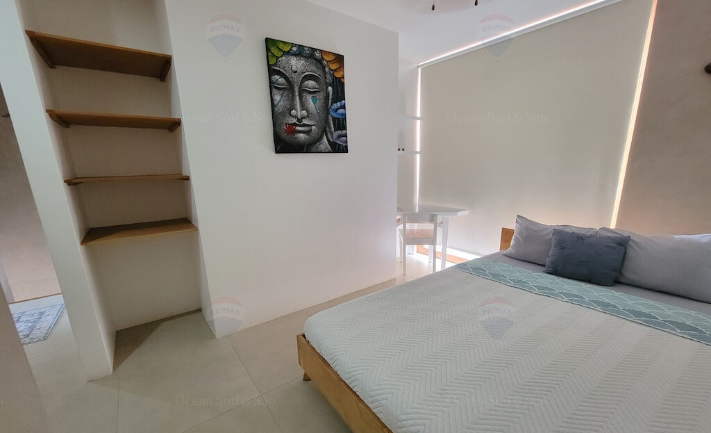 La excelente ubicación, la construcción de alta calidad con materiales nobles y la elegancia y modernidad de este condominio de 7 unidades lo hacen único. Terminado en agosto de 2019, este complejo está cercado y asegurado por un guardia en el lugar las 24 horas, los 7 días de la semana. Disfrutarás de la piscina de agua salada con su ducha al aire libre, un cuarto de lavado y una terraza en la azotea que ofrece increíbles vistas de 360° desde Playa Grande hasta Playa Avellanas. Nido acogedor perfecto para vivir en el centro de Tamarindo o una inversión ideal para alquileres vacacionales a corto plazo. No se permiten mascotas.