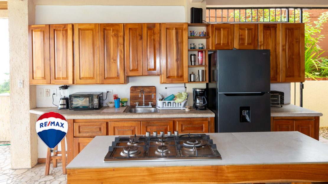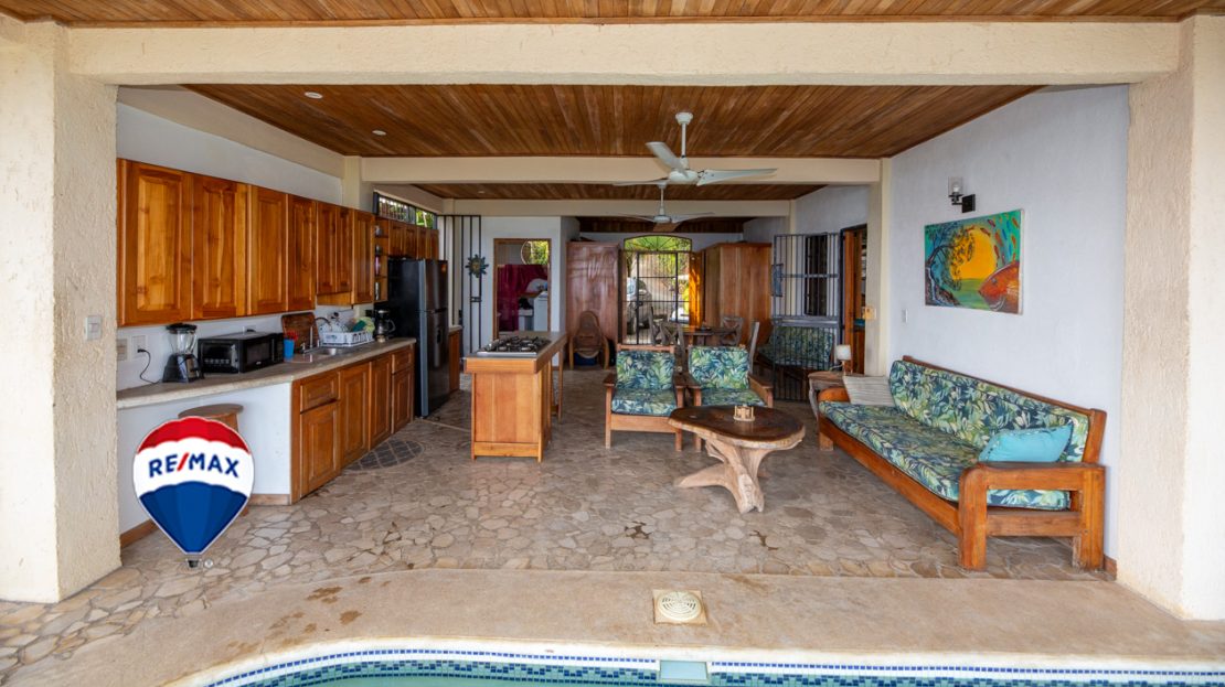 Downstairs there is an air conditioned bedroom with private bathroom, an additional guest bathroom that doubles as a laundry room and a kitchen. The living space is left open aired to catch the daily ocean breezes which looks over the plunge pool with jacuzzi jets and panoramic ocean views.