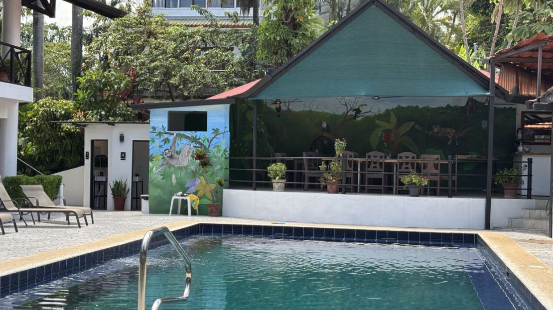 This charming 2-bedroom, 1-bath penthouse offers a perfect blend of comfort and natural beauty in the heart of Manuel Antonio. With a spacious interior measuring 1,745 square feet, the penthouse features a large back terrace equipped with a hammock, ideal for relaxation, and a front terrace that overlooks the inviting pool area.