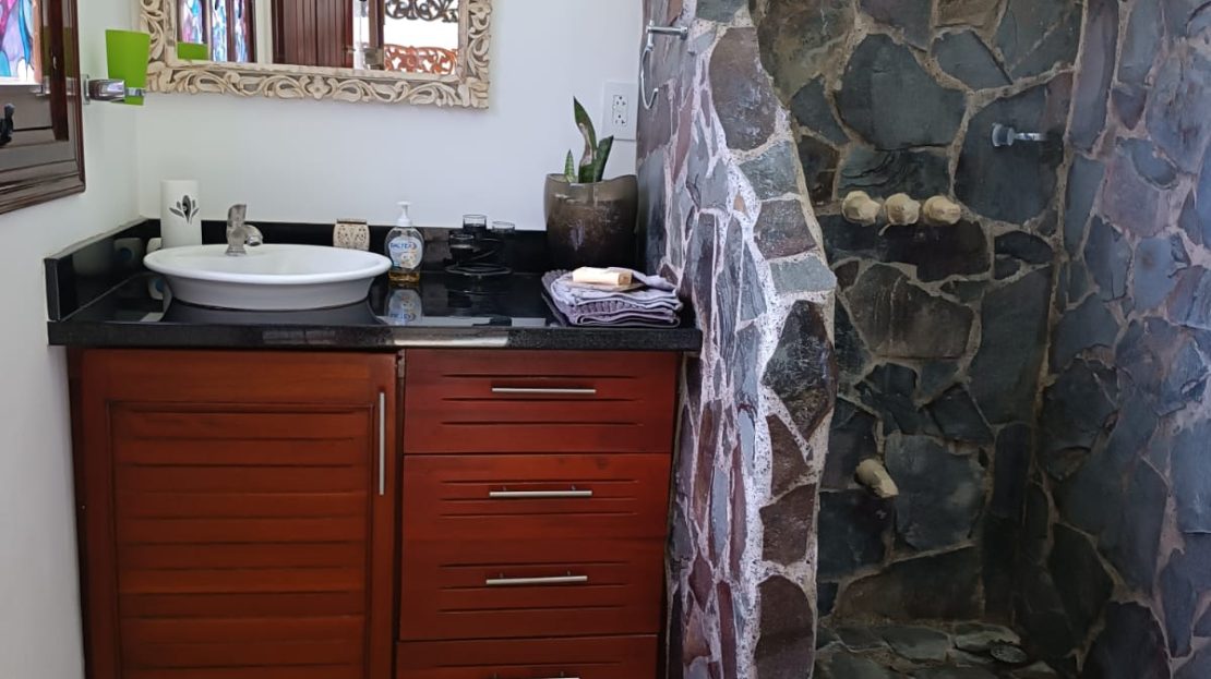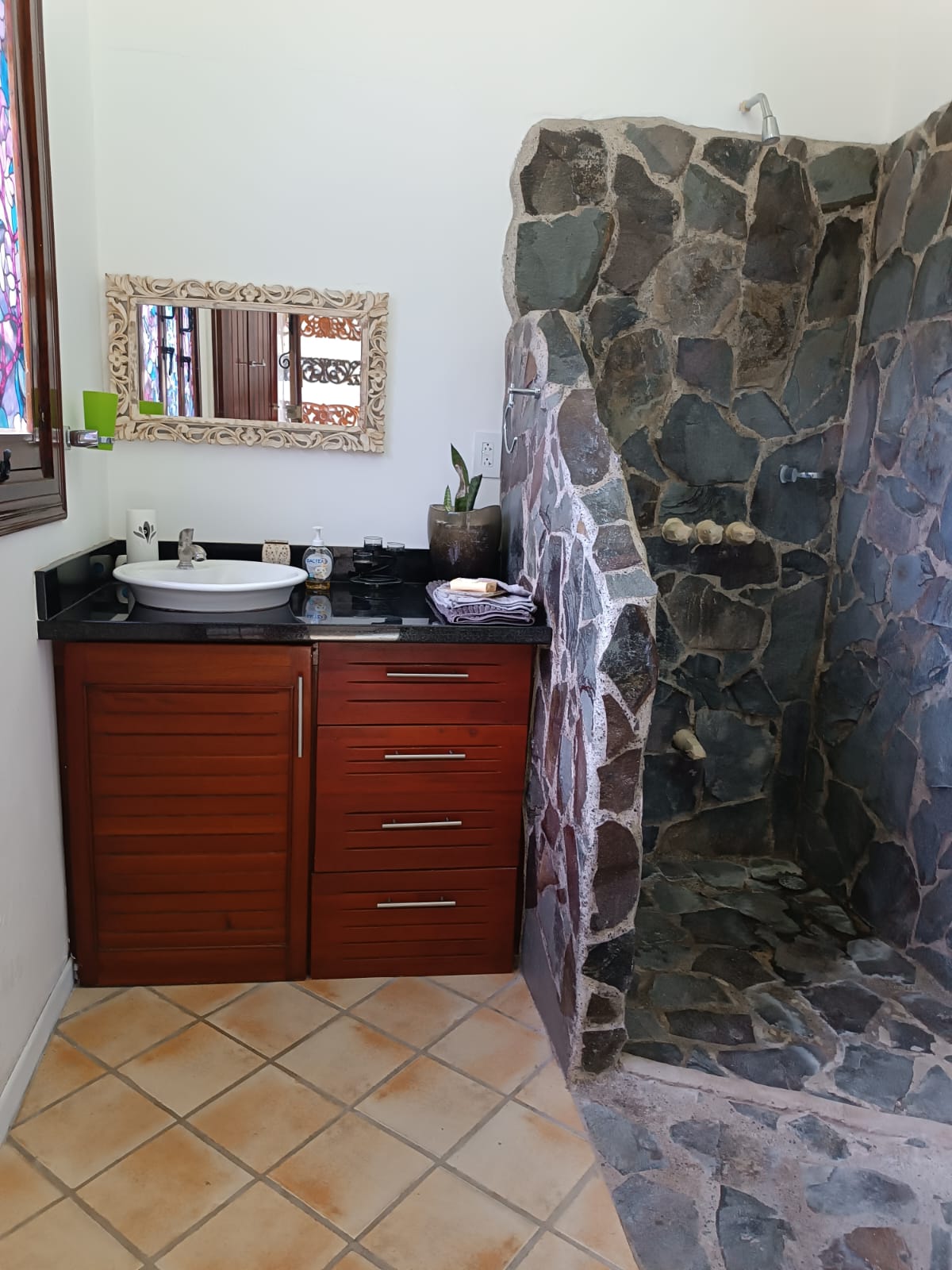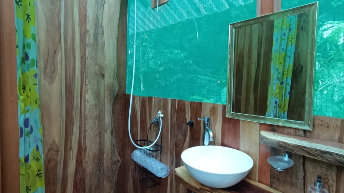 Frente a la impresionante piscina central, un impresionante punto focal que separa las salas de estar, encontrará tres encantadoras unidades de alquiler. Dos casitas elevadas estilo casa del árbol ofrecen a los huéspedes una experiencia inmersiva en la selva, mientras que la unidad más grande de dos dormitorios incluye baño compartido, lo que la hace ideal para estancias prolongadas o para recibir visitas familiares. Todas las unidades están rodeadas de exuberantes jardines, flores tropicales y árboles maduros que atraen a monos, tucanes, guacamayas rojas y otros animales locales. Suite para el cuidador en el lugar.