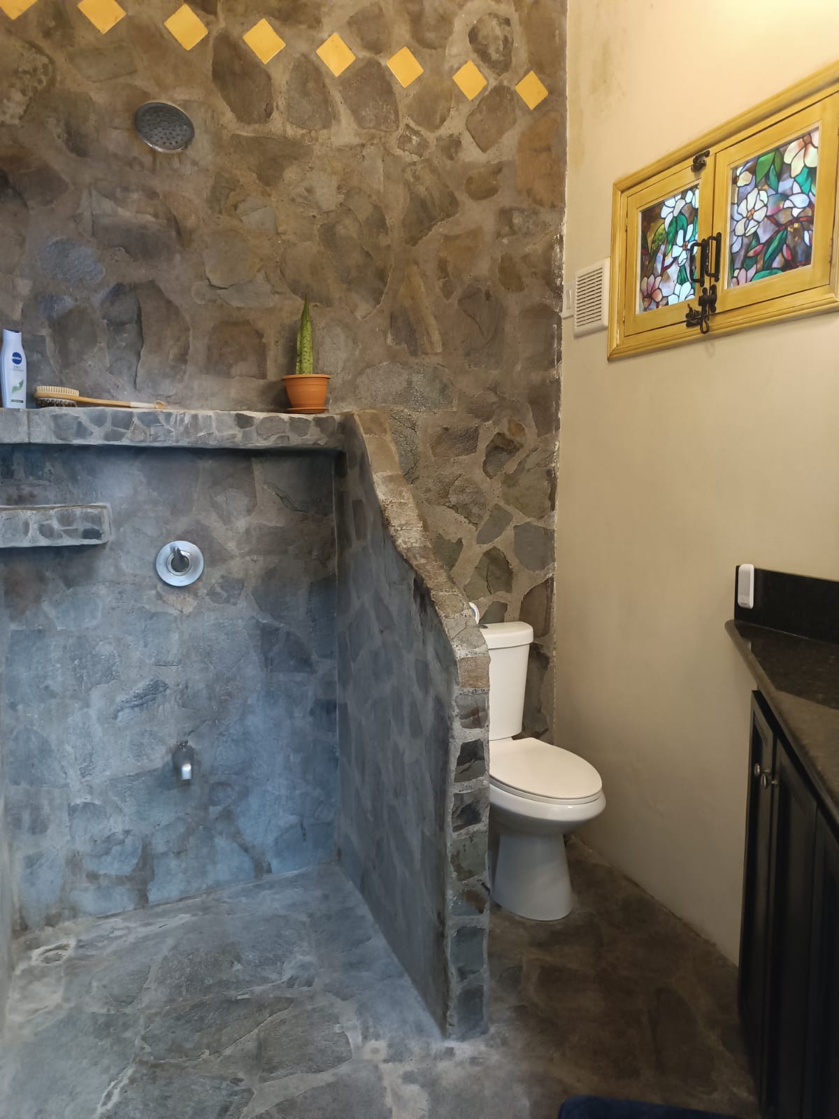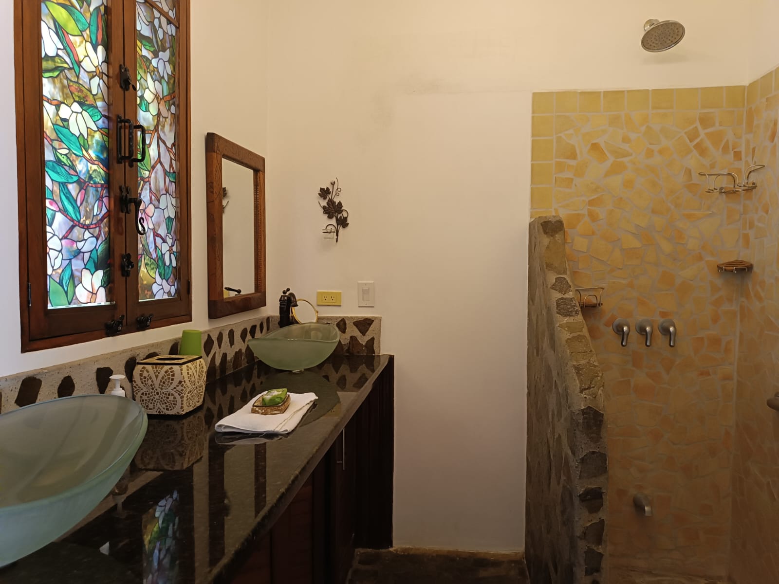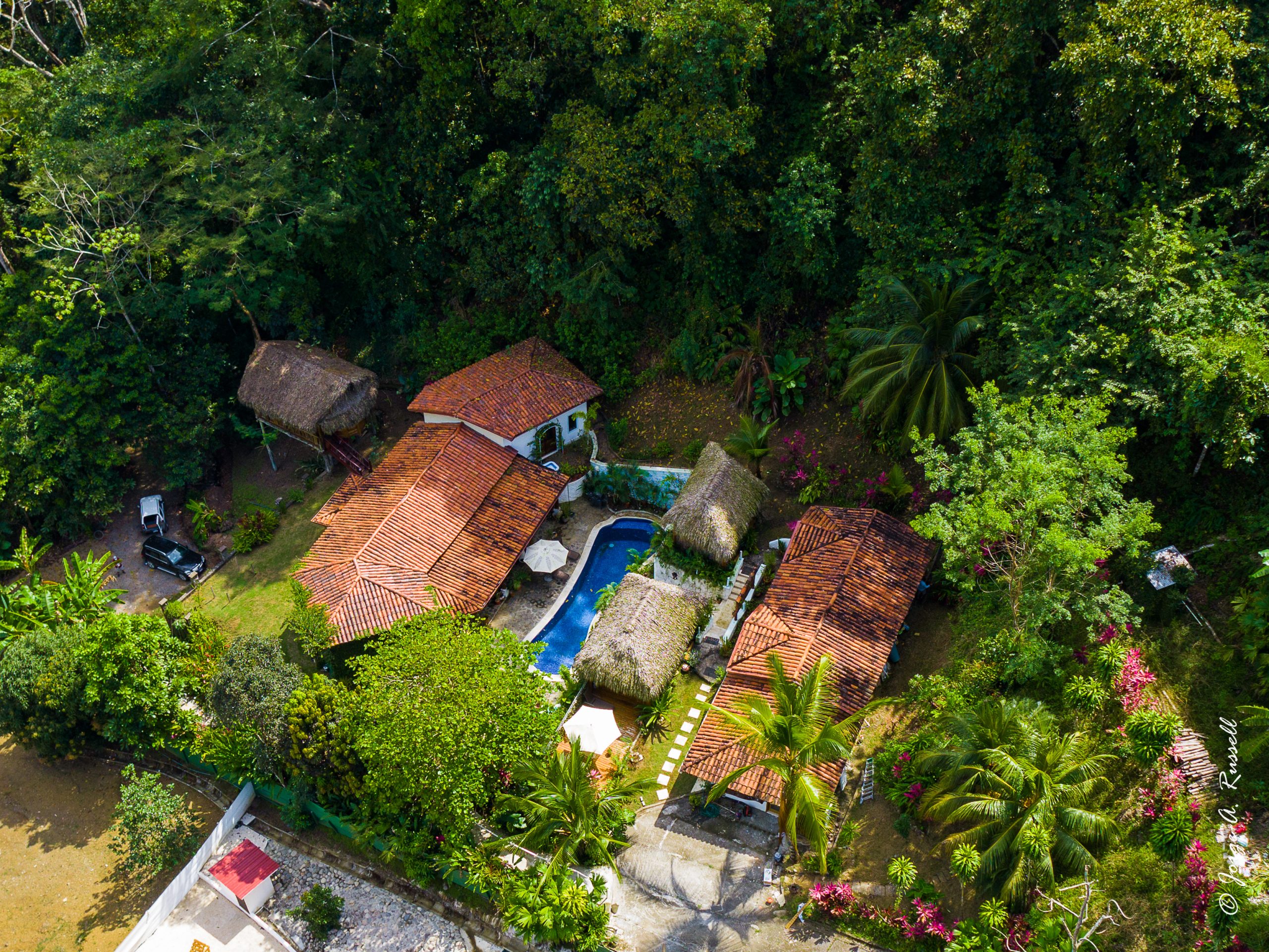 Across the stunning central pool—an impressive focal point that separates the living spaces—you’ll find three charming rental units. Two elevated treehouse-style casitas offer guests an immersive jungle experience, while the larger two-bedroom unit including a shared bathroom, making it ideal for longer stays or visiting family. All units are surrounded by lush gardens, tropical flowers, and mature trees that attract monkeys, toucans, scarlet macaws, and other local wildlife. Caretakers suite on-site.