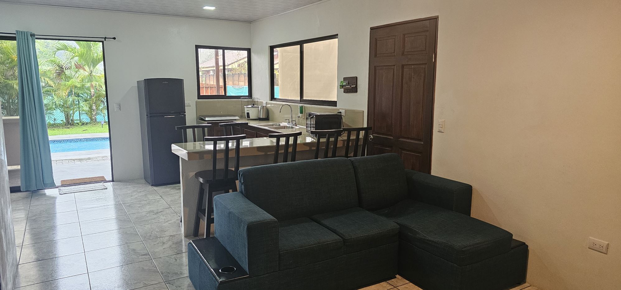 Located in the secure and tranquil El Trapiche condominium community, this modern 3-bedroom, 2-bath detached home offers the perfect blend of comfort, nature, and investment potential just minutes from the world-famous La Fortuna area. Built only a few years ago, the home features contemporary construction, a thoughtful layout, hot water in both bathrooms, and a private pool that creates a true indoor-outdoor tropical living experience.