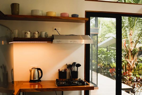 A fully equipped, open-air community kitchen, perfectly suited for guest use or group events